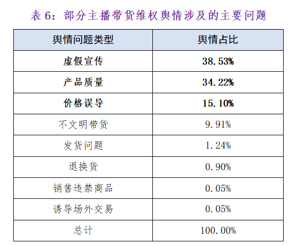 与2022年相比,李佳琦、疯狂小杨哥等主播的产品质量和不文明带货舆情比例都有所上升,而他们的虚假宣传问题舆情有所下降,新增加4位主播有两位进入维权舆情前五,问题也较为突出。
