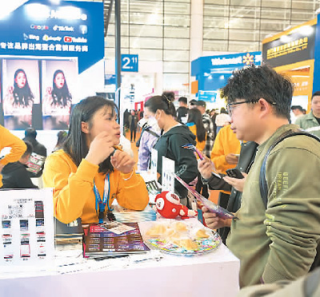 第四届中国跨境电商交易会日前在福州举行,共吸引全球30多个跨境电商平台、全国80多个出口型产业带和110多个城市的1500多家参展商。图为客商在现场交流。新华社记者 林善传摄