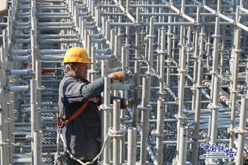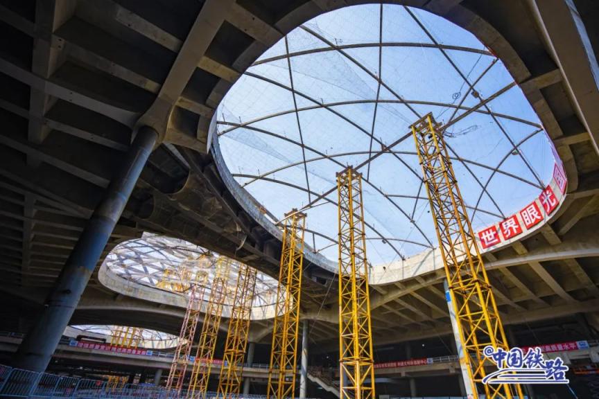 由于采光井洞口区域为镂空结构,跨度达23.5米,建设的框架梁高6米、宽1.2米,在同类站房中属于罕见的构件,施工前需要先搭设起超高、超大规模架体,这也是此项施工中的难点。
