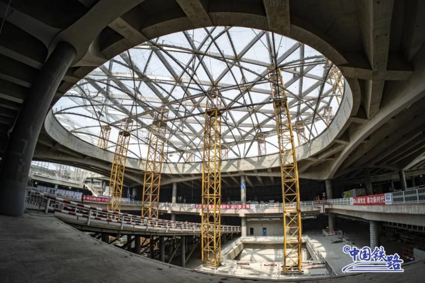 目前,北京城市副中心站综合交通枢纽工程主体工程结构完成至89%,二次砌装、机电设备安装和装修装饰等正在安全稳定推进中。