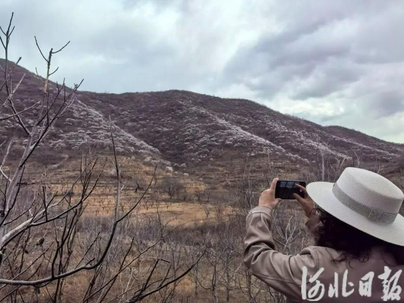 3月29日,第三届龚庄杏花文化旅游节开幕。秦皇岛市海港区驻操营镇龚庄村千亩杏花竞相绽放,吸引游客爬山观赏。