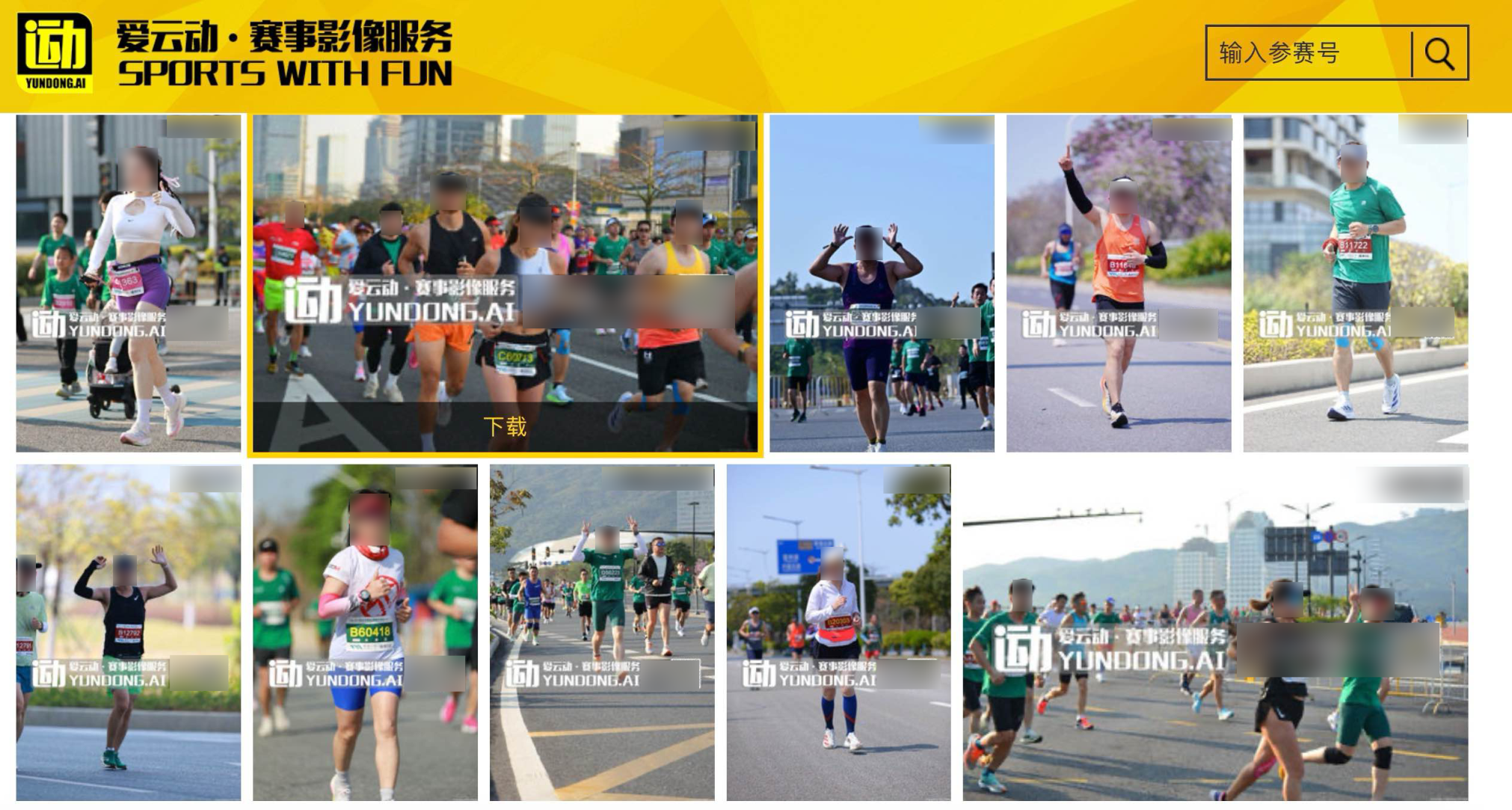在“爱云动”官网,记者查询到近年来举办的众多马拉松赛事照片,只要付费,都可下载高清图片。