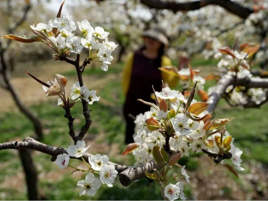 近日,河北省秦皇岛市昌黎县的梨树陆续开花。农民田间劳作,游客踏青赏花,构成一幅美丽的乡村画卷。新华社记者杨世尧摄