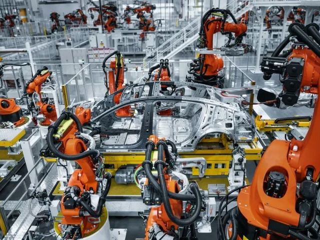 在蔚来先进制造新桥二工厂,部分制造场景已实现AI智能决策,大大小小的智能装配岛上,天窗、前后挡风玻璃等零部件装配“并联”作业,总装方案由“单行道”变“立交桥”,多平台多车型可同时在线生产,平均一分钟下线一台车……