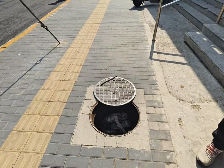 刘女士下班回家途经西城区里仁街人行道时,踩到一个窨井边缘,不料井盖突然翻起,刘女士一条腿陷入其中导致多处擦伤。事后刘女士四处奔走,西城区城管委和属地白纸坊街道也多方联系,过了一个月仍无法找到井盖的产权单位。