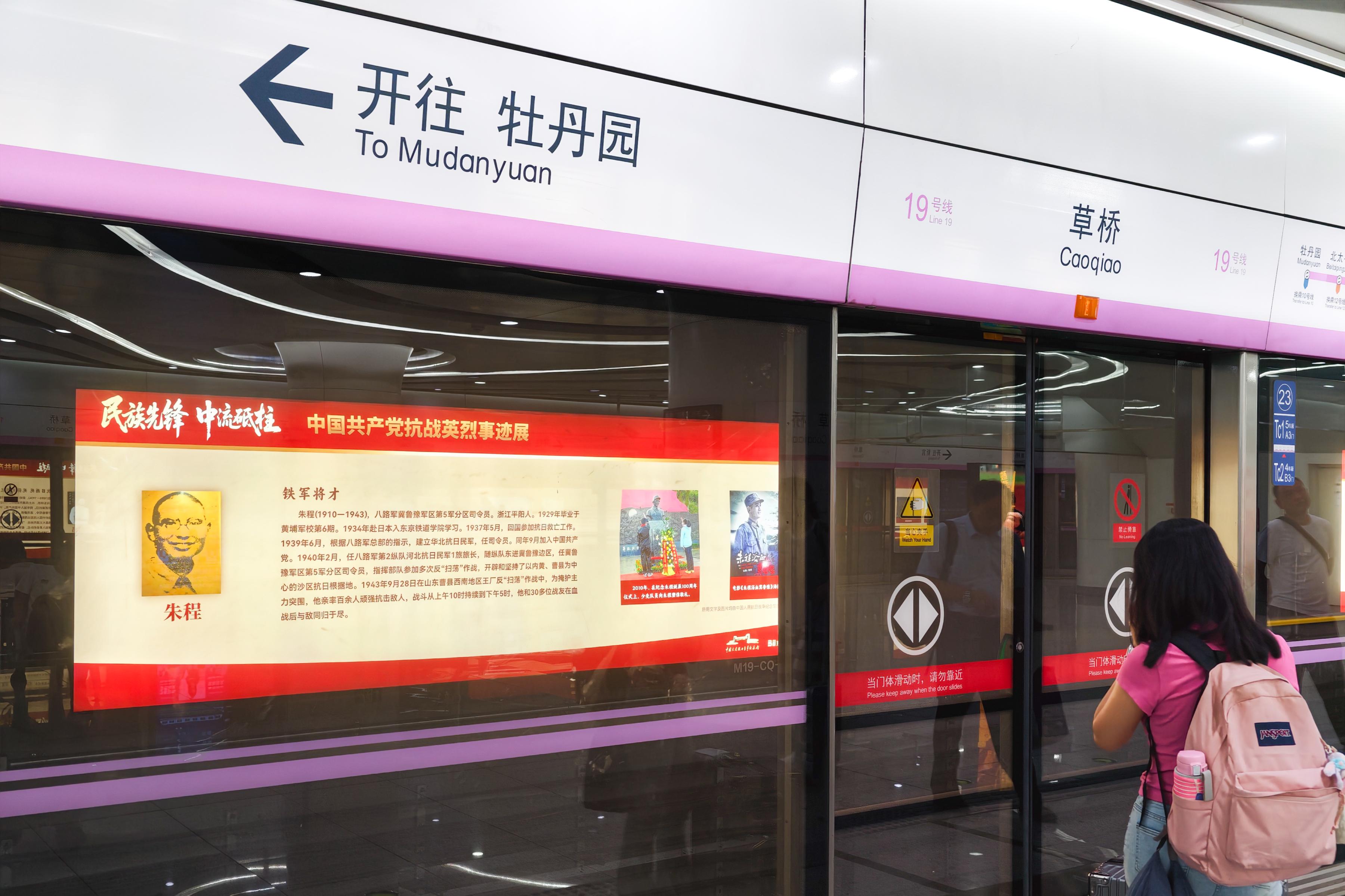 草桥站站台推出“民族先锋 中流砥柱——中国共产党抗战英烈事迹展”,把爱国主义教育和地铁车站进行深度融合。
