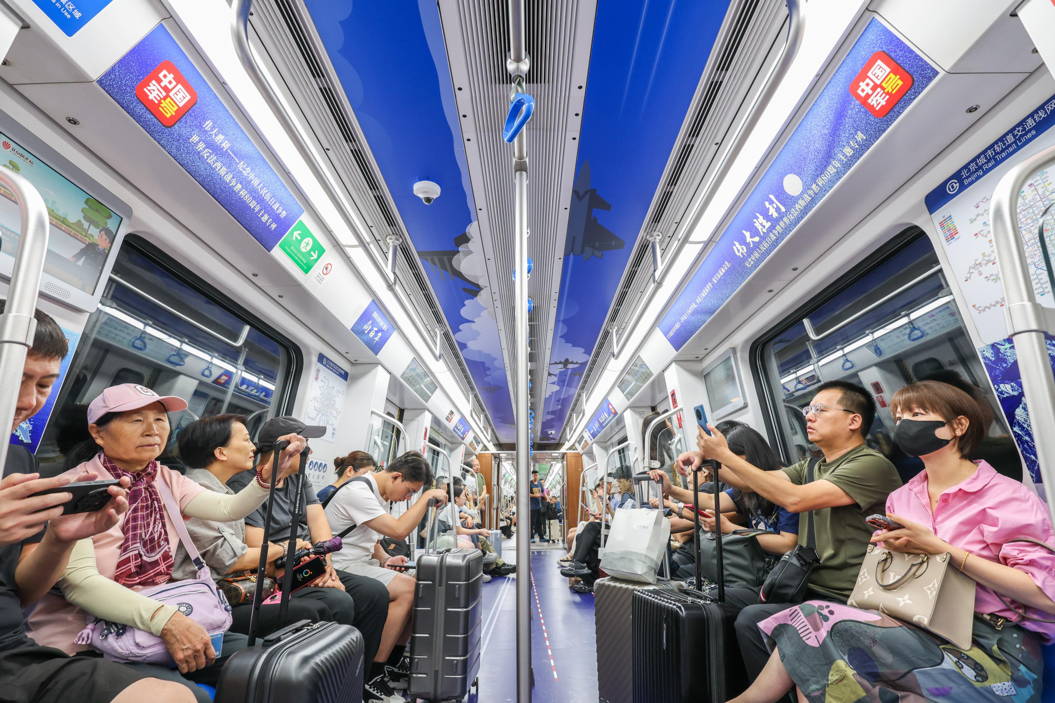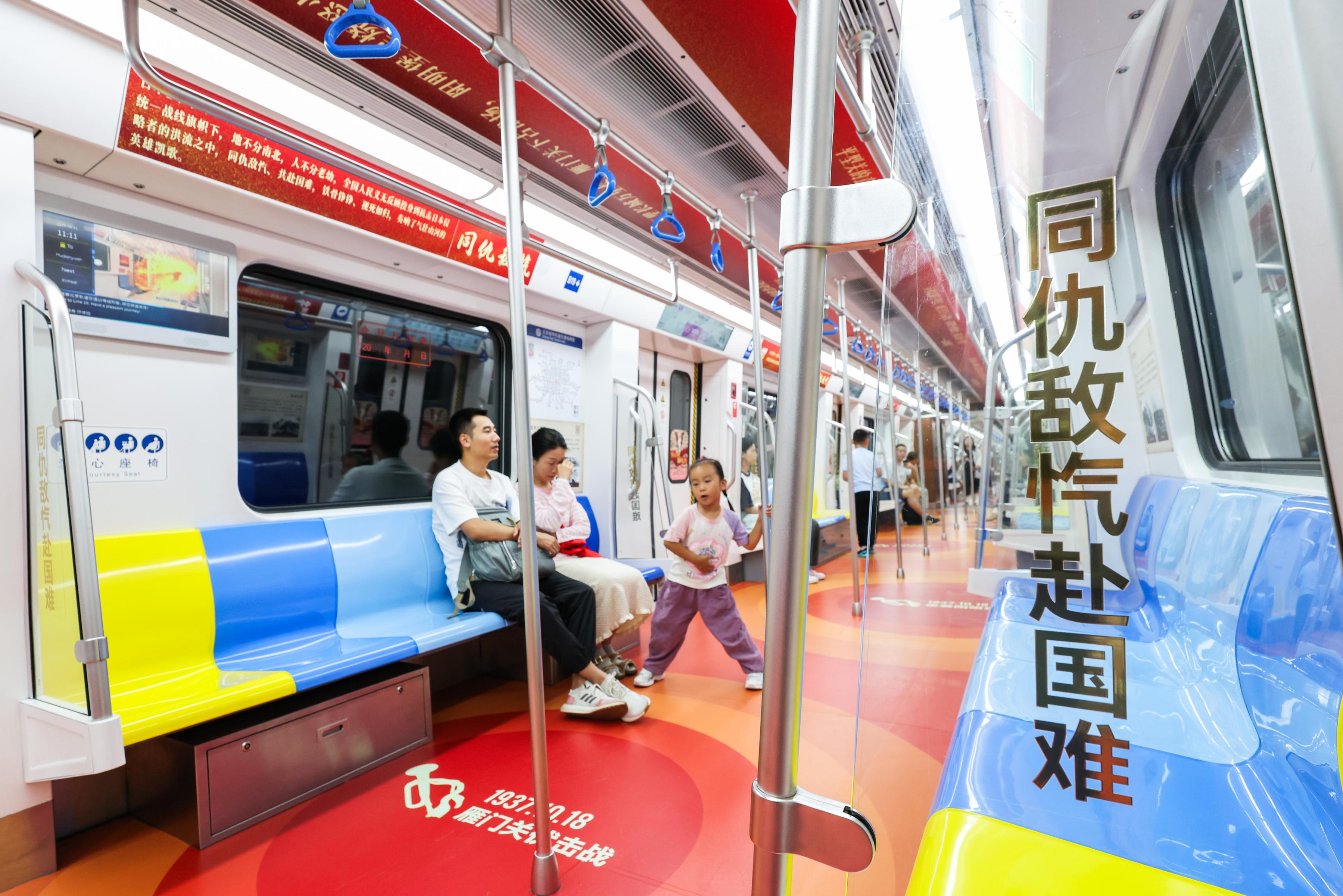 8月31日,为纪念中国人民抗日战争暨世界反法西斯战争胜利80周年,由解放军新闻传播中心“中国军号”联合北京轨道运营公司共同打造的“伟大胜利”主题专列在北京轨道交通19号线正式上线运行。