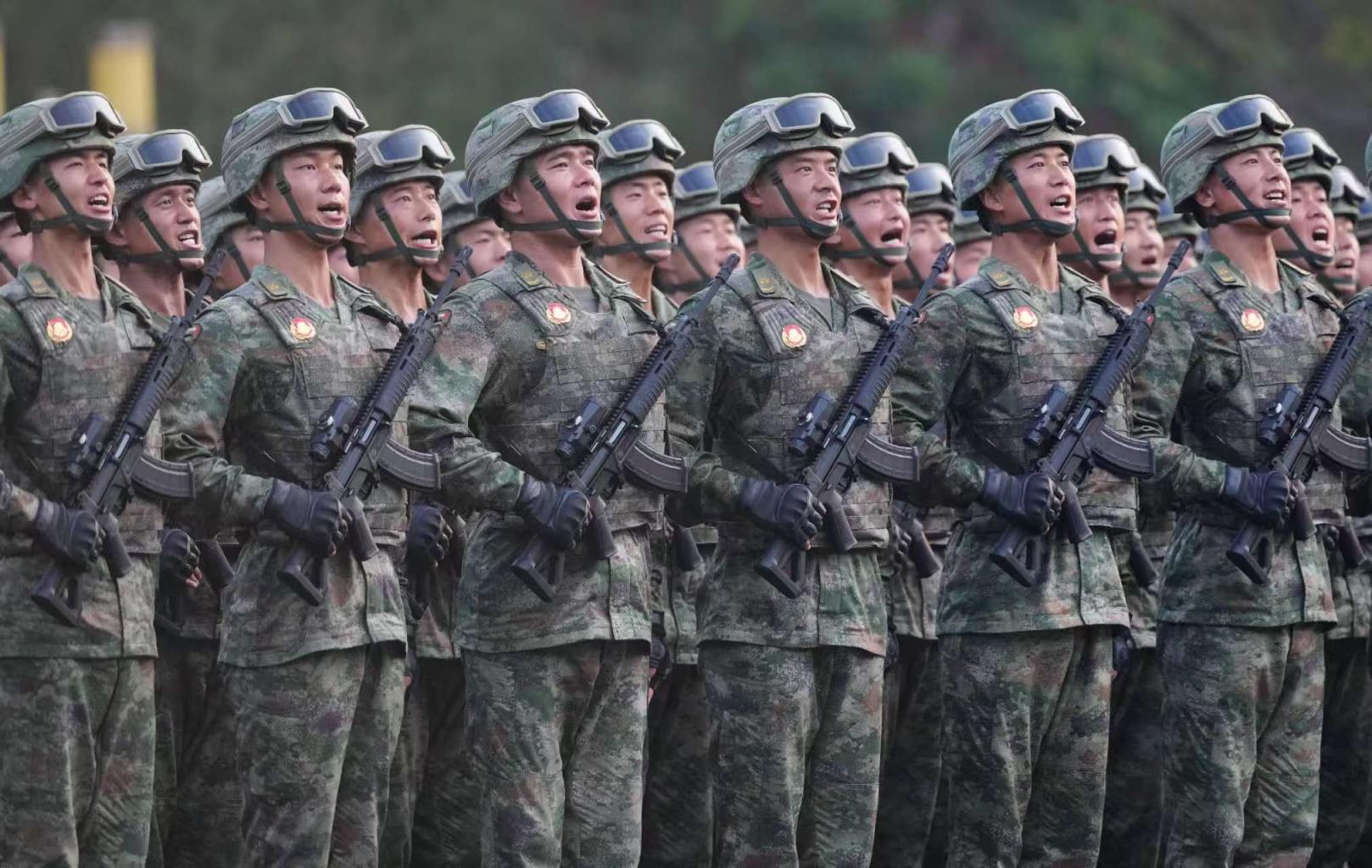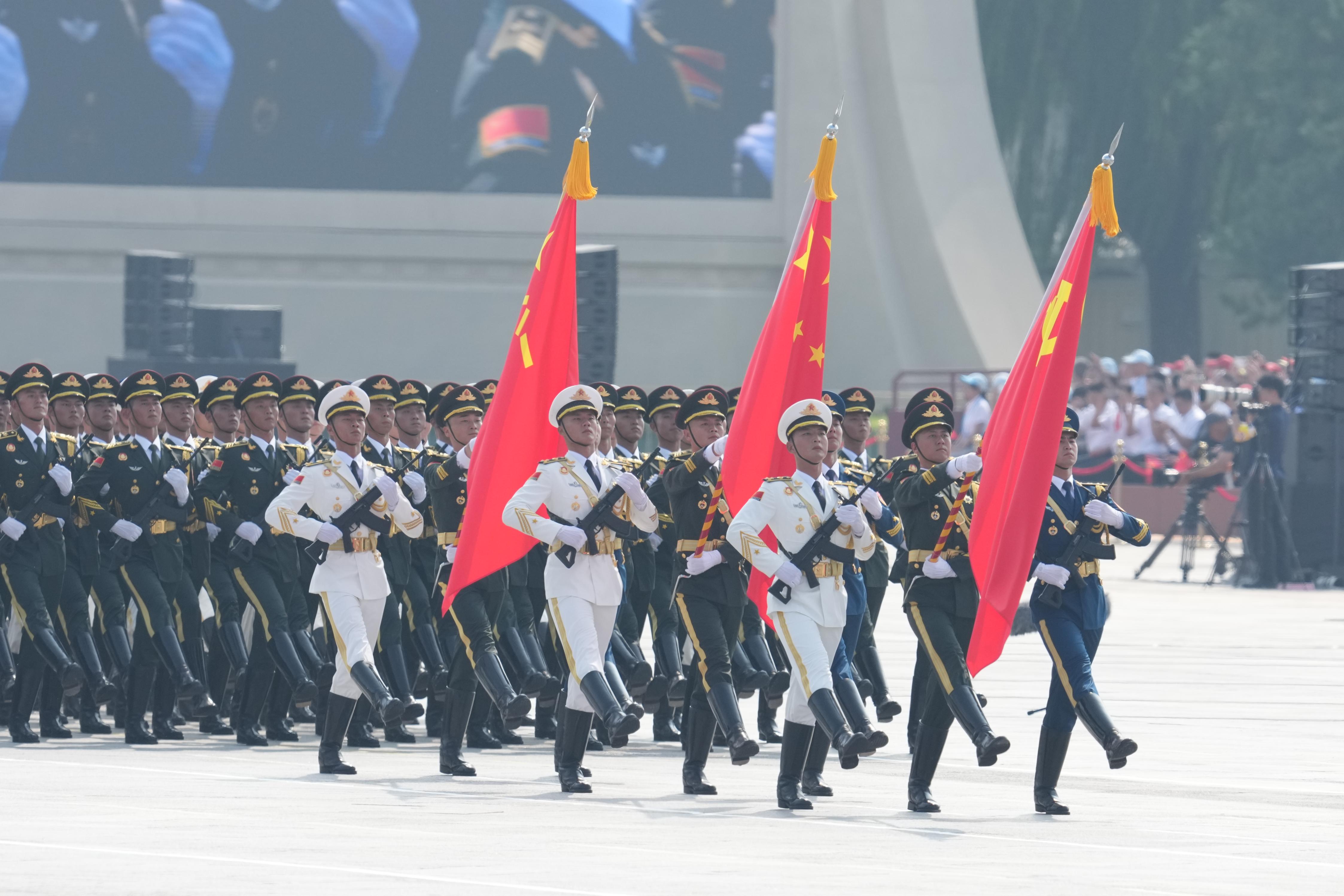 三军仪仗队在行进中。