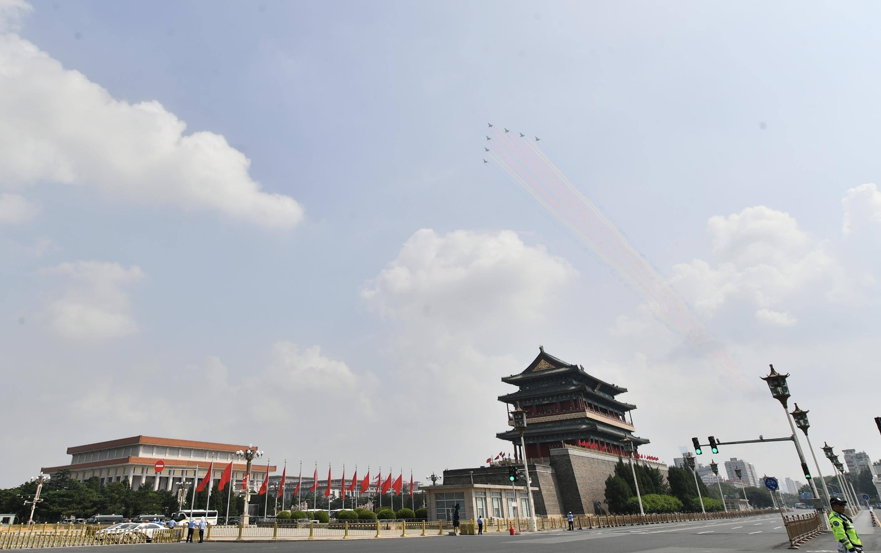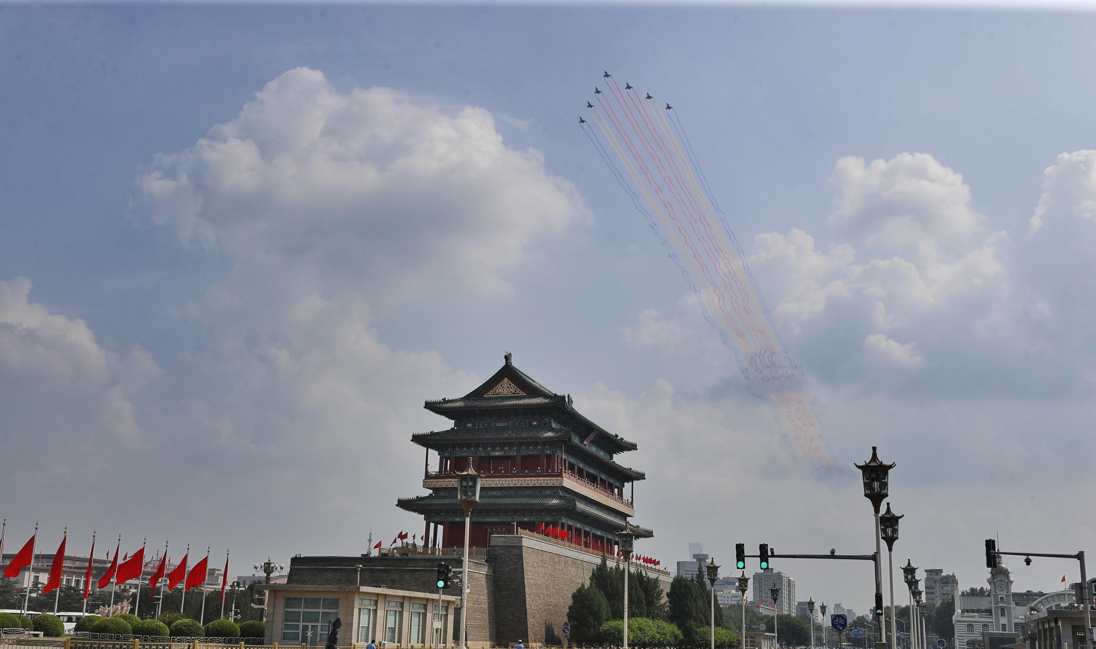 空中梯队划过北京上空。
