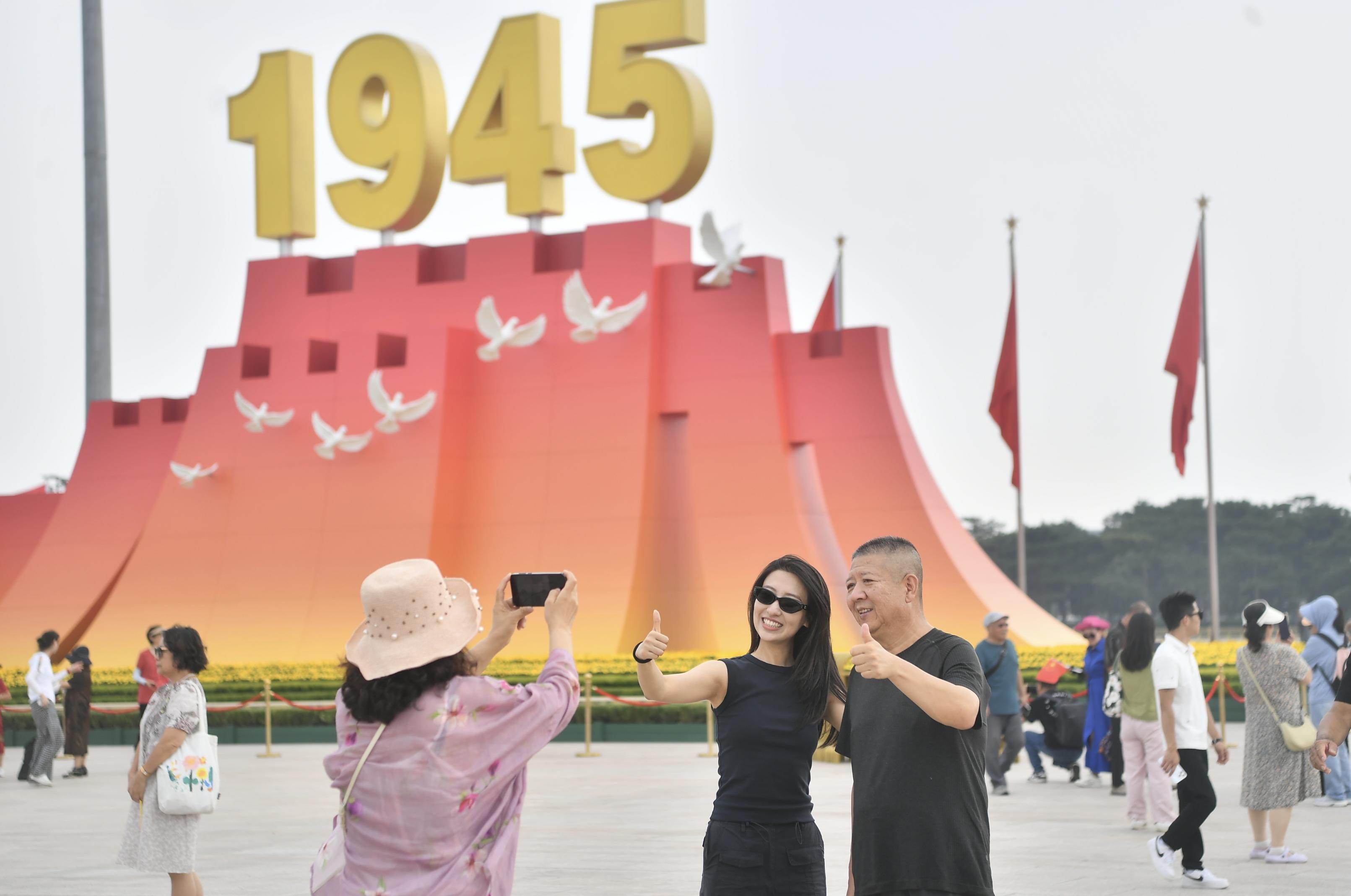 9月4日,天安门广场恢复开放,纪念中国人民抗日战争暨世界反法西斯战争胜利80周年大会景观吸引众多市民游客打卡拍照。本报记者 蔡代征摄