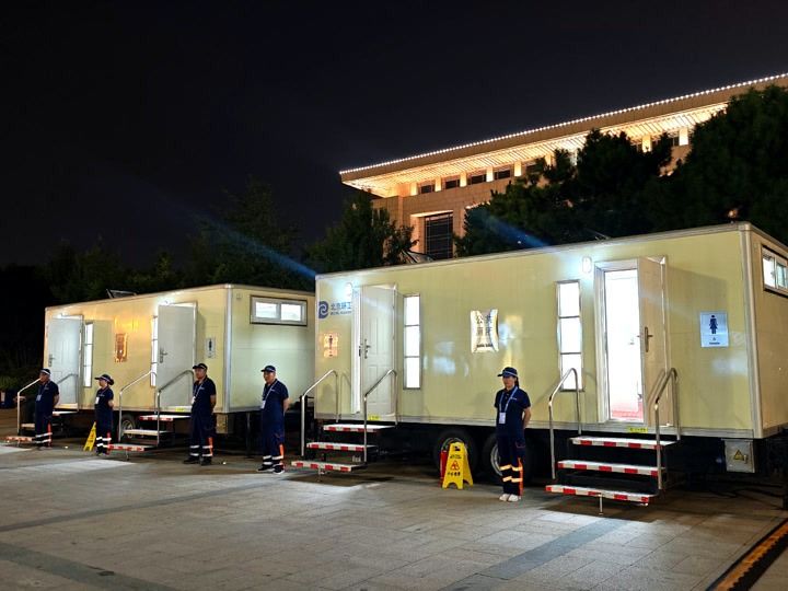 在人民大会堂东侧、国家博物馆西侧等人流密集的地方,设置厕位足、效率高的篷帐式厕所;像汽车一样的拖挂厕所放置在长安街沿线,如厕人员相对分散;单体厕所则安装在如厕人员相对较少的区域,三类厕所总计140座,提供3500多个厕位。