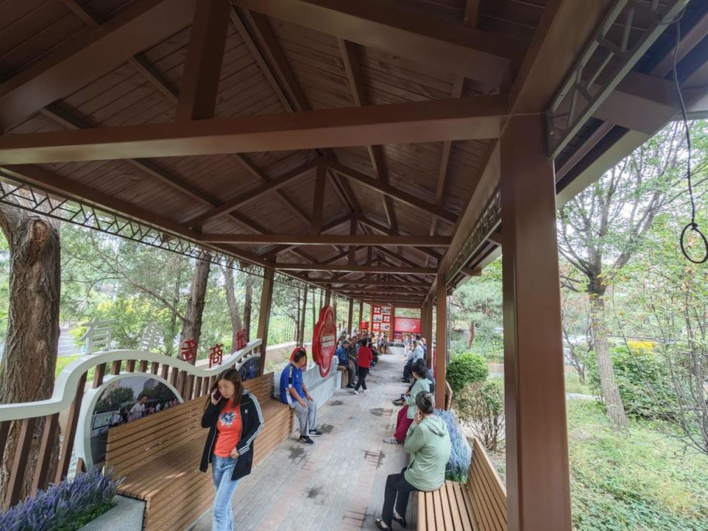 红蓝相间的防滑地面,古色古香的木质屋顶,配着带扶手的休闲长椅,再加上贴心的无障碍缓坡——这个曾经破旧不堪的凉亭,如今成了老山东里社区最受老年人欢迎的风雨连廊。每到天气晴好时,74岁的梁大爷总要来这里坐坐,和邻居们聊聊天。“这么一改真好,下雨有地方躲,走累了有地方坐,乐意下楼的老人眼见着就多了。”梁大爷笑着说。