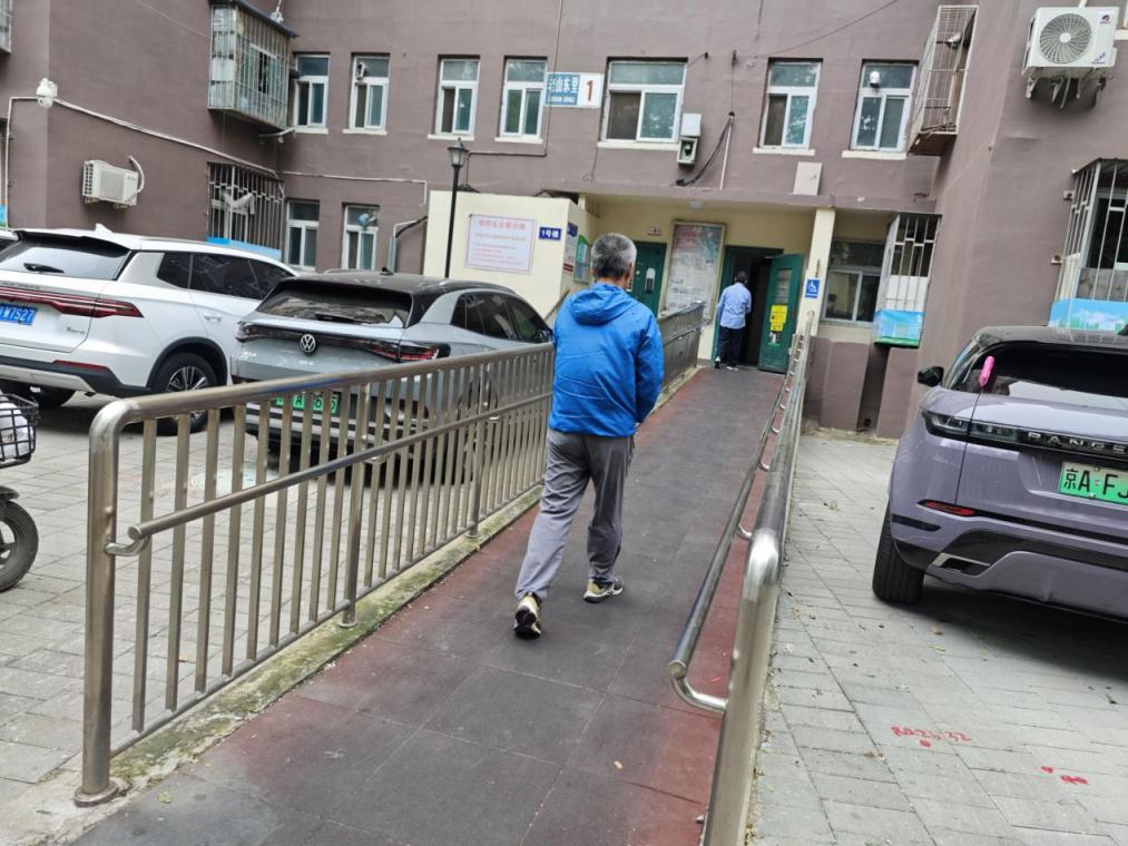 “单元门口这些台阶,天天上上下下,可真够费劲的!”建成于20世纪80年代的双玉中街小区,有老年住户反映,由于缺乏无障碍坡道,日常出入楼栋存在实际困难。