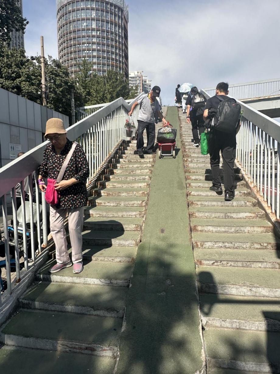进站是老人出行的起点,却常因设施设计与老人需求脱节,成为老人出门的“第一道坎”。无论是通向公交站台的无电梯天桥,还是地铁站“一眼望不到头”的高台阶,抑或站台上的坡道缺失或“断头”,都让老人“望而却步”。