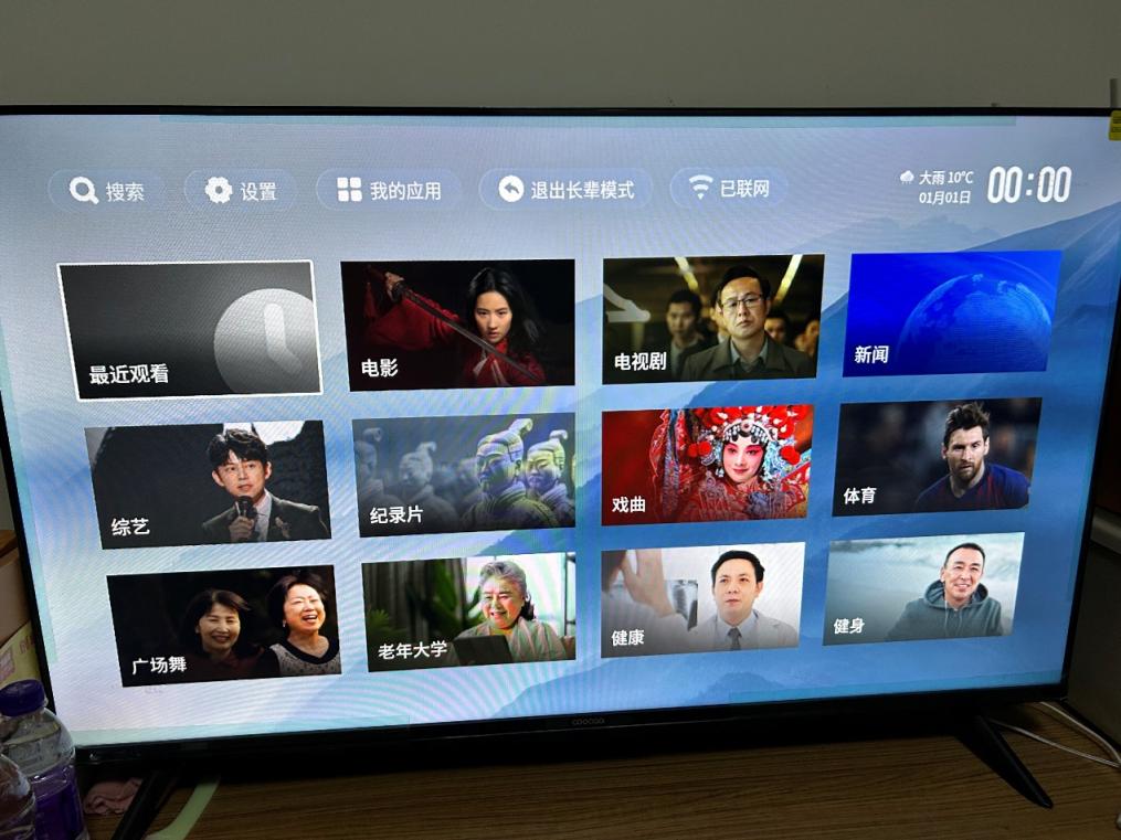 而即使切换到了系统的“长辈模式”,界面相比原来确实简化了一些,但对于刘阿姨来说,仍然是“花花绿绿一大片”,根本不知道现在选定的是哪项内容。更为尴尬的是,在这个模式中就没有进入直播频道的选项。