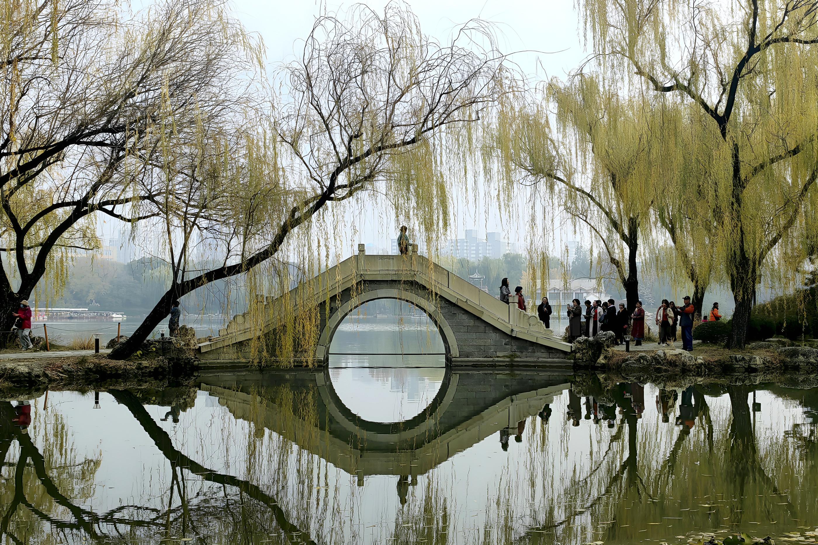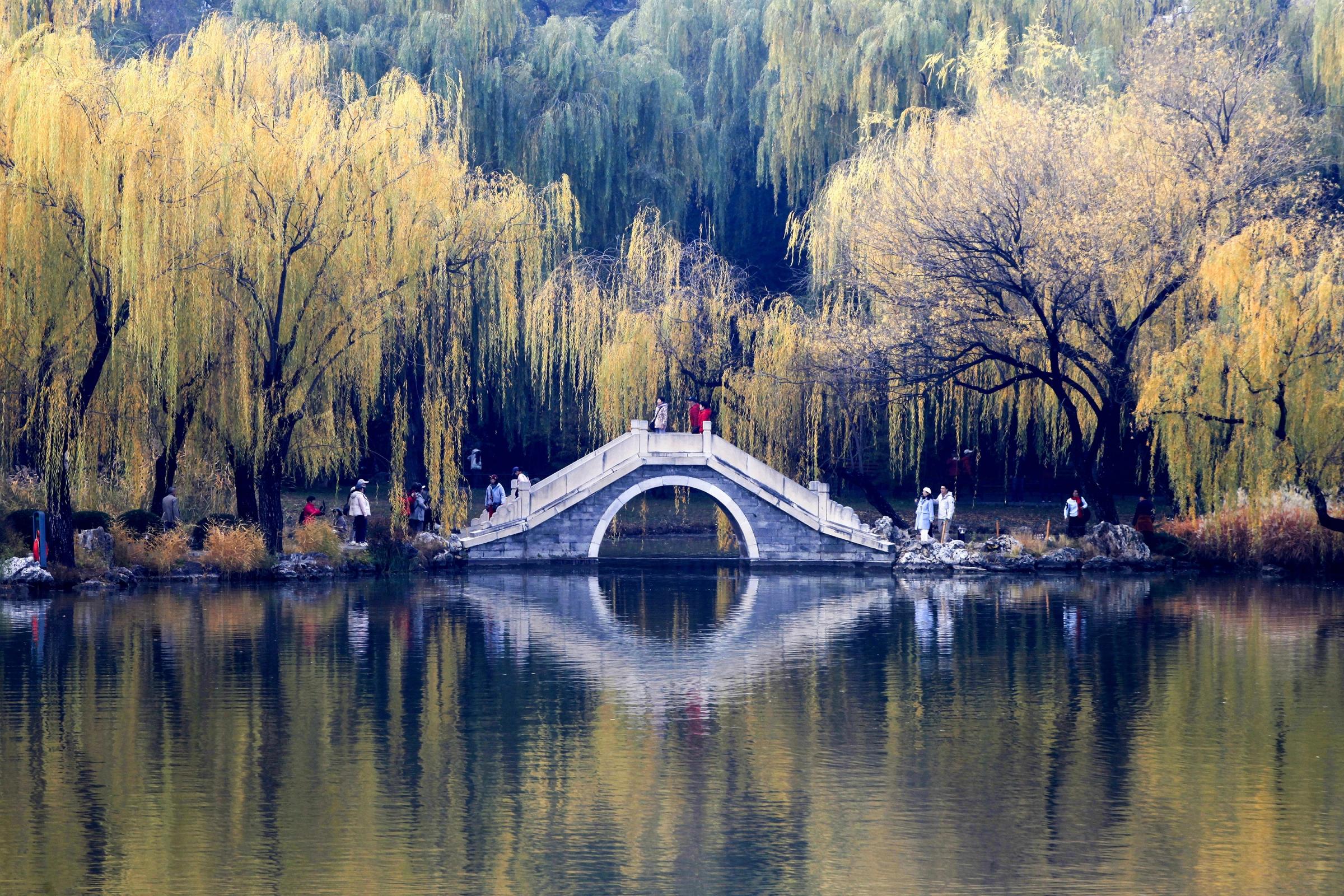 紫竹院公园渐入冬色,一幅水墨长卷。垂柳映景,曲径通幽,碧潭如镜,静候知音入画来。赵乃明 摄