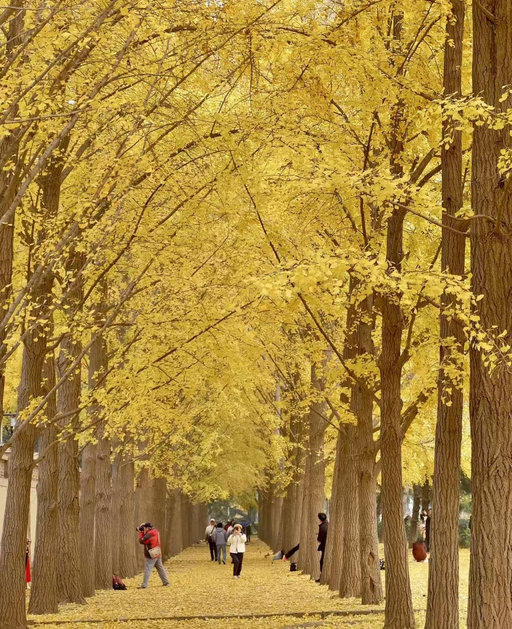 钓鱼台东门外的银杏林遍染金黄,游客们在这美景前流连忘返,打卡拍照,为北京城的深秋画卷增添了一抹初冬的浪漫。吴春光 摄