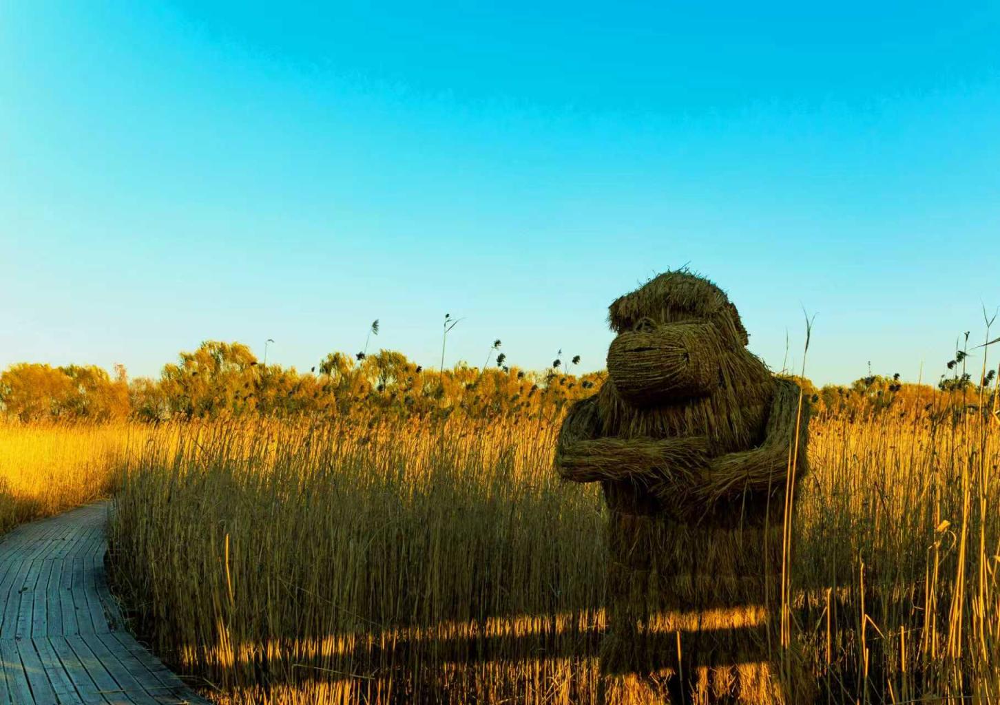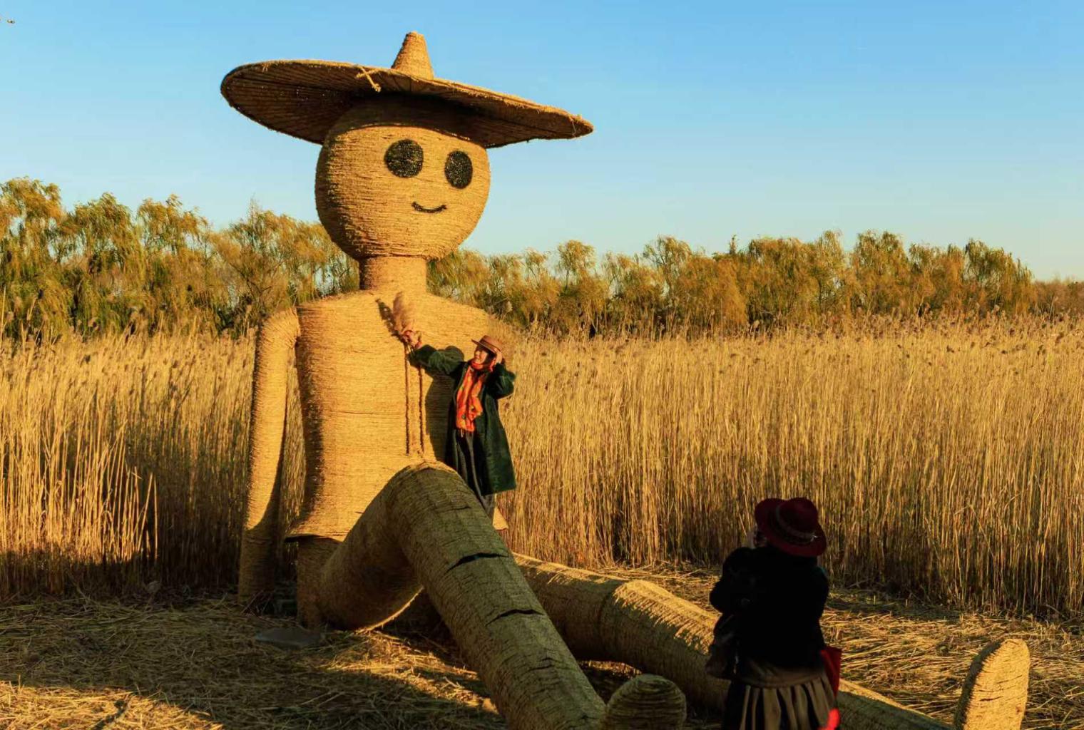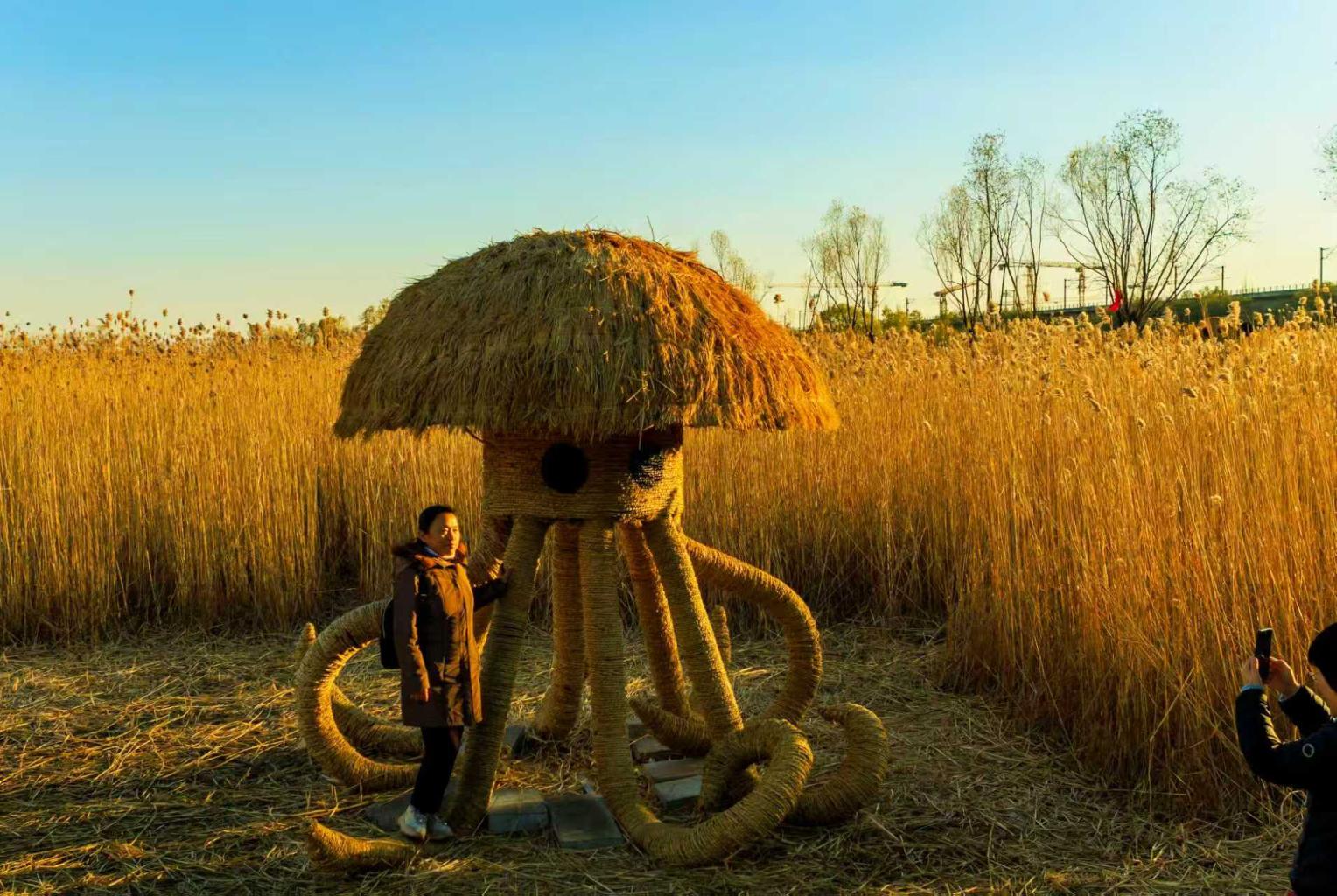 初冬时节的北京园博园,晴空如洗。芦苇已变成金黄色,在阳光的照耀下,更显金光灿灿。众多游客来此打卡留影,兴致盎然。张志仁 摄