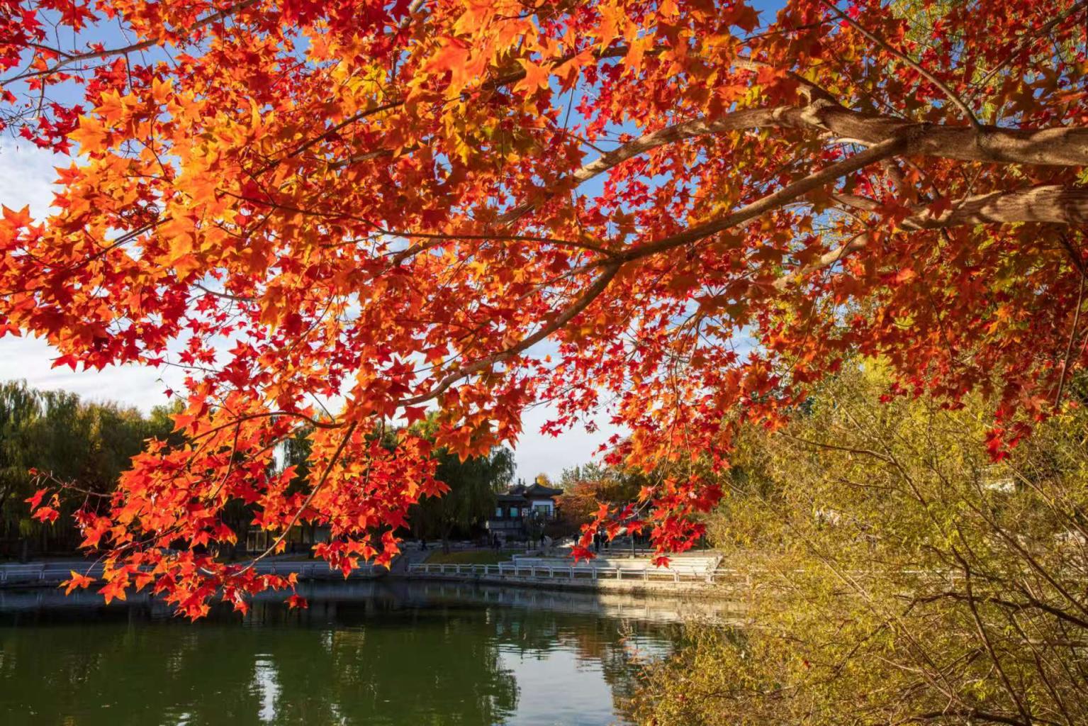 秋冬交际的陶然亭公园,红叶如火如荼地燃烧着,与亭台楼阁相映成趣,为这座古典园林平添了几分诗意与温情。温建生 摄