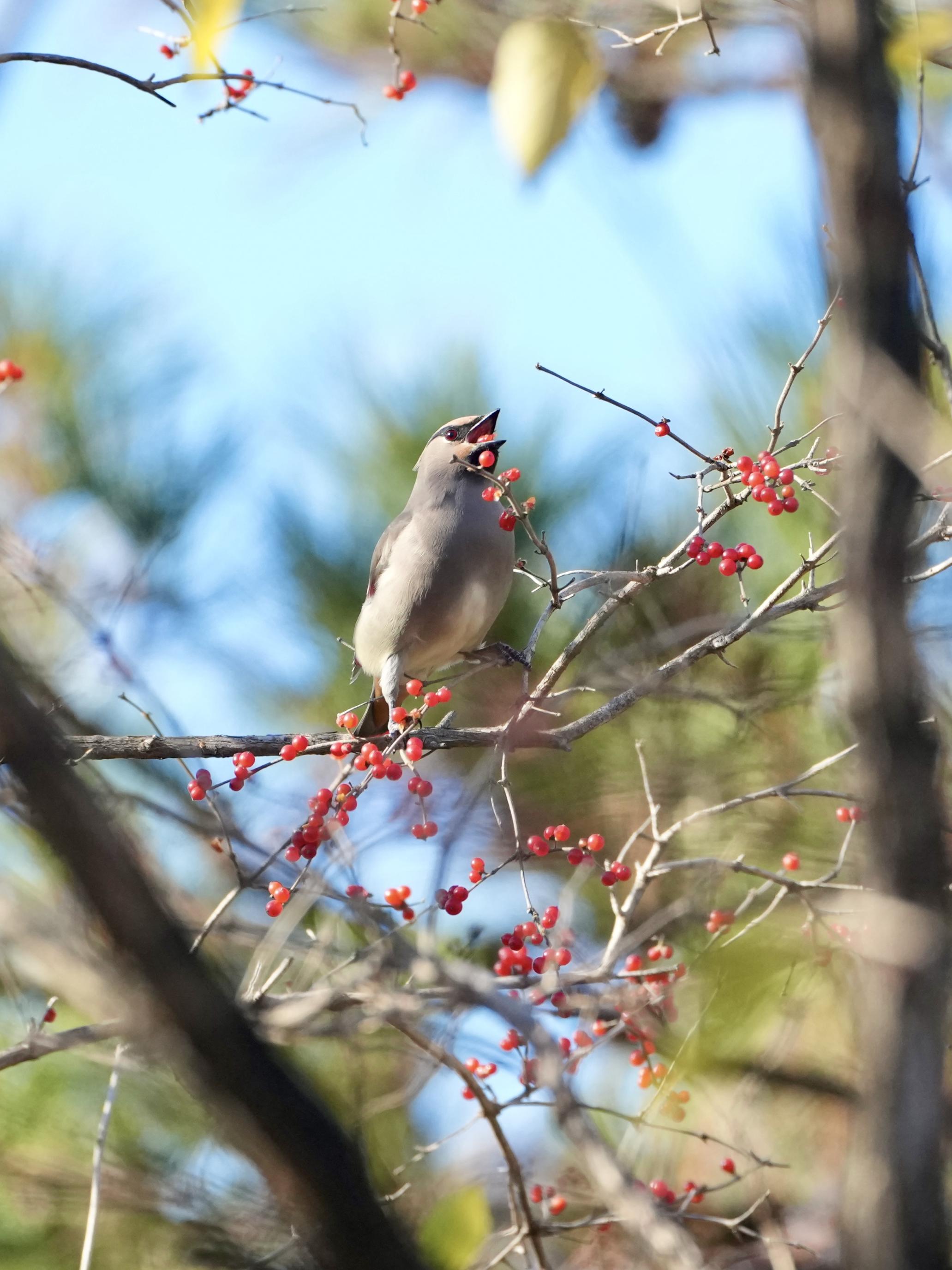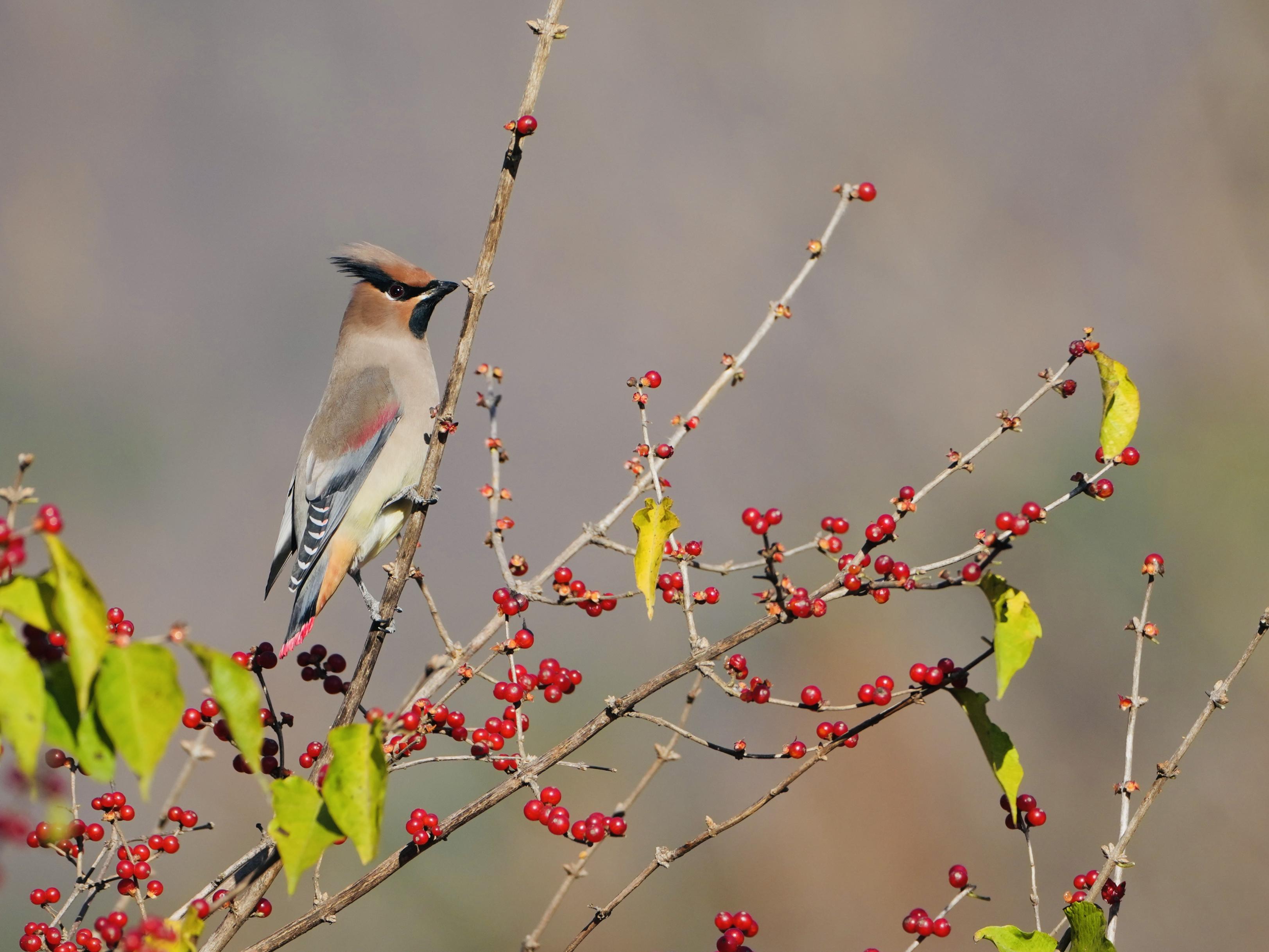 近日,太平鸟翩跹而至,衔着冬日浆果,为国家植物园点缀生机。申庆春 摄