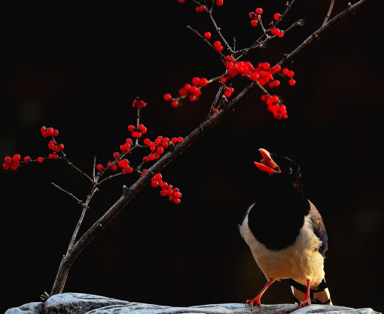 奥林匹克森立公园内,飞鸟望红果。 周建林 摄