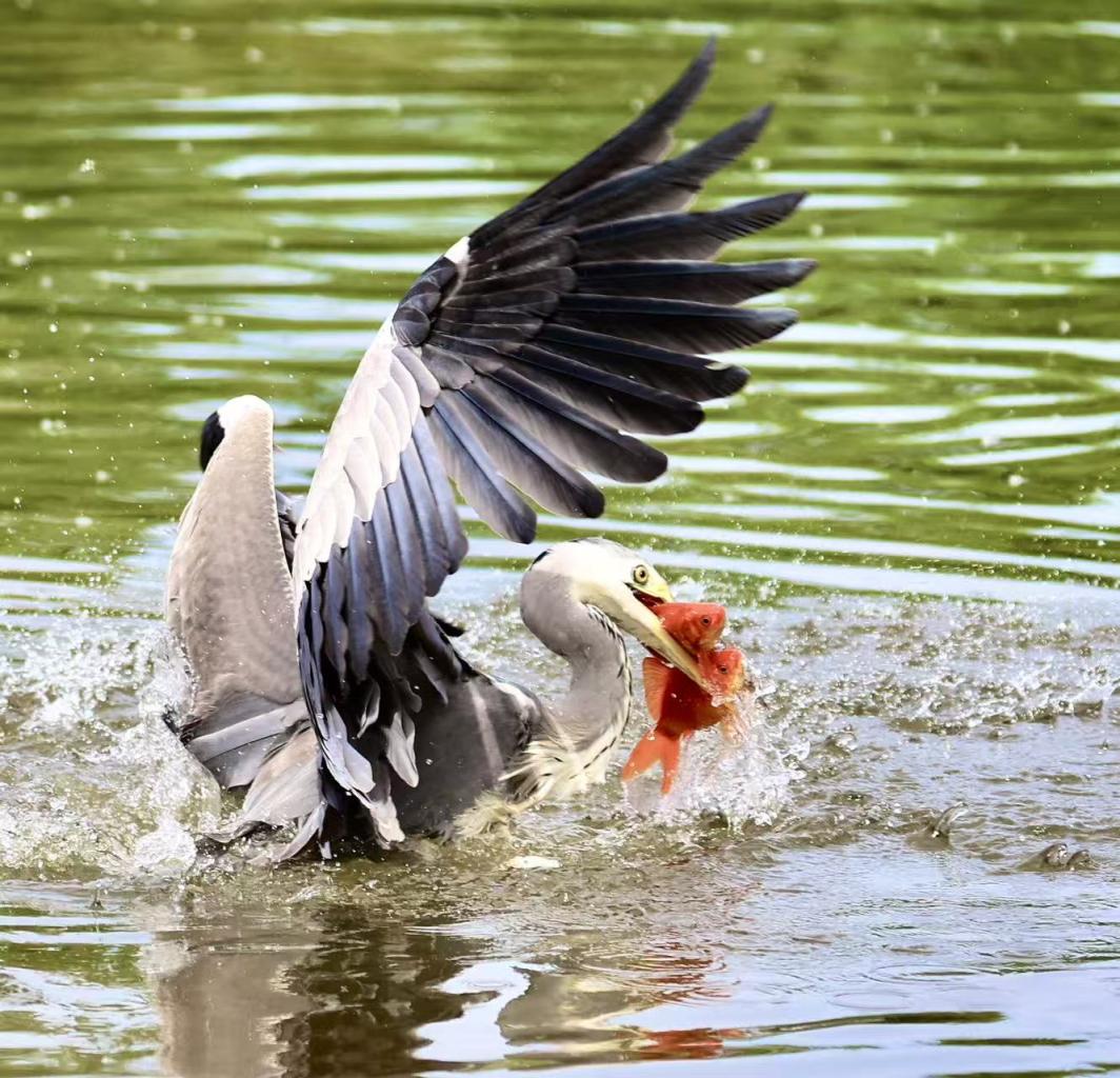 太阳宫公园内,飞鸟捉鱼。 周建林 摄