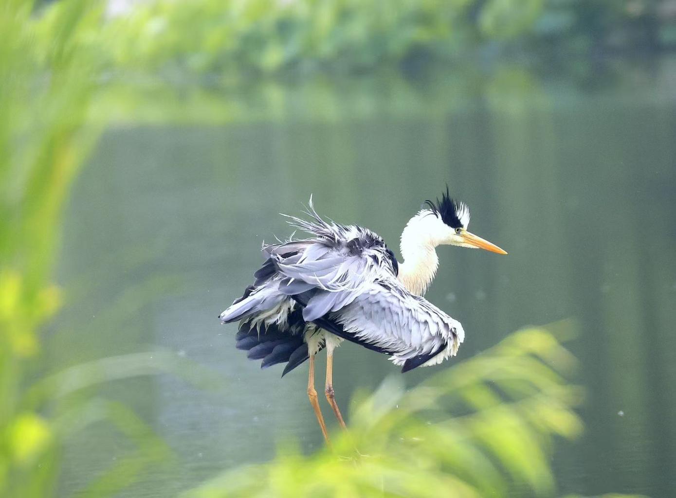 北京柳荫公园内,飞鸟荡于碧水。 周建林 摄