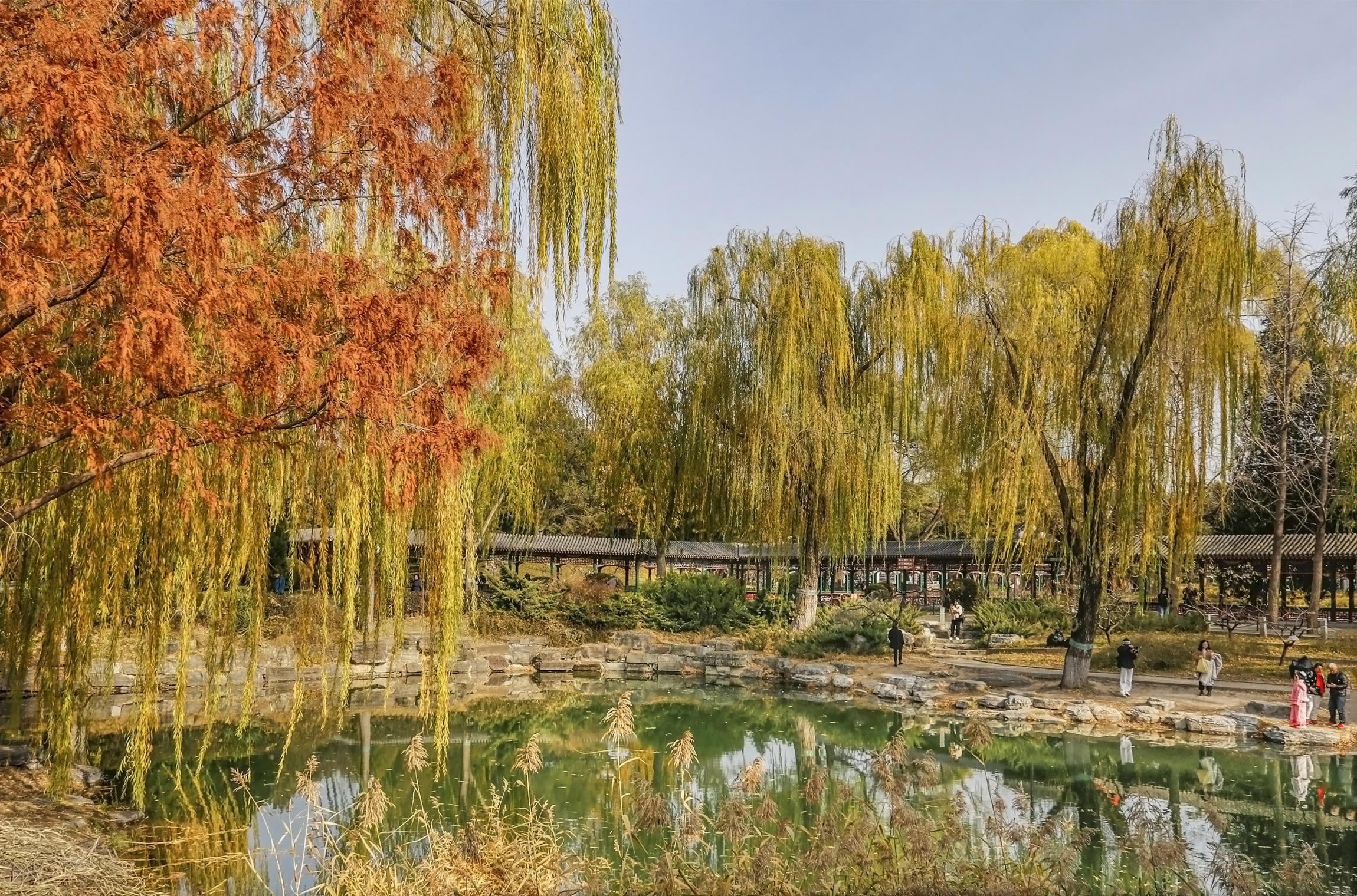 北京中山公园小雪时节仍现暮秋景,黄绿相间,碧水而嵌。赵云光 摄
