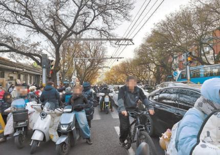 “一到接送孩子的时候家长就头疼,整条街两侧的非机动车道都被机动车占满,我们这些骑车的家长就只能带着孩子挤到机动车道上,车多人也多,之前就发生过多起剐蹭事故,特别危险。”近日,学生家长张先生向北京日报客户端反映,交道口南大街早上8时和下午4时左右,两侧的非机动车道上总是“车满为患”,骑行者无奈之下只能和机动车“抢路”。