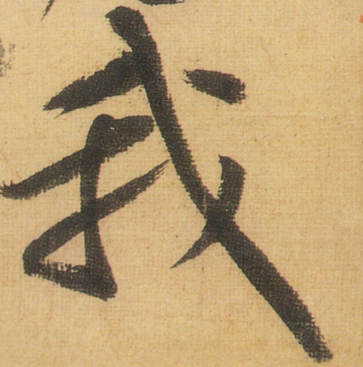 文学史中对于黄庭坚诗歌的定位是:他的诗具有丰富的人文意象和生新廉悍的艺术风貌,晚年逐渐呈现出返璞归真的倾向,体现出一种平淡之美。文学、书法都是一个人情感和性情的流露。《松风阁》诗呈现出一种融生新悍廉于悠然本真的独特风格,那么他的书法中也该呈现出这样一种风格。我们看黄庭坚的字,乍一看,脑子里怎么也找不出一个与他类似的模样来,他的横尤长,撇捺极舒展,这一点与魏晋尚韵的流丽和隋唐尚法的严谨都不同,与和他差不多时代的欧阳修和蔡襄的隽秀端庄也不同,给人一种陌生新奇的视觉冲击。他的横和撇还常常写成两头粗中间极细的样子,这大概算得上是“蜂腰”“鹤膝”的书病了,他“长枪大戟”的笔画又确实像是带着武装的士兵,具有一种奇绝劲挺的质感,但放在整个字中,这样的笔画却又并不突兀,而是与整体形成了有机的组合,老辣而又圆融。