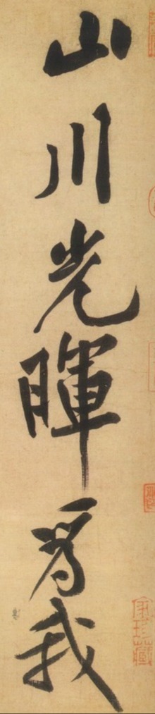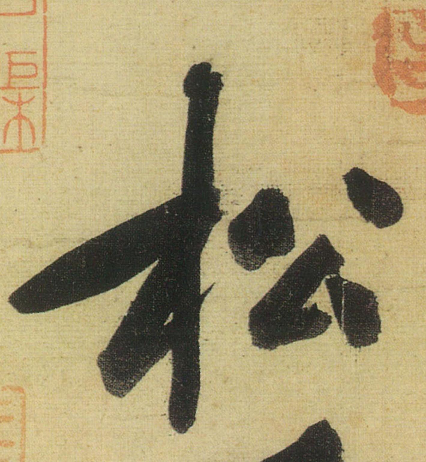 文学史中对于黄庭坚诗歌的定位是:他的诗具有丰富的人文意象和生新廉悍的艺术风貌,晚年逐渐呈现出返璞归真的倾向,体现出一种平淡之美。文学、书法都是一个人情感和性情的流露。《松风阁》诗呈现出一种融生新悍廉于悠然本真的独特风格,那么他的书法中也该呈现出这样一种风格。我们看黄庭坚的字,乍一看,脑子里怎么也找不出一个与他类似的模样来,他的横尤长,撇捺极舒展,这一点与魏晋尚韵的流丽和隋唐尚法的严谨都不同,与和他差不多时代的欧阳修和蔡襄的隽秀端庄也不同,给人一种陌生新奇的视觉冲击。他的横和撇还常常写成两头粗中间极细的样子,这大概算得上是“蜂腰”“鹤膝”的书病了,他“长枪大戟”的笔画又确实像是带着武装的士兵,具有一种奇绝劲挺的质感,但放在整个字中,这样的笔画却又并不突兀,而是与整体形成了有机的组合,老辣而又圆融。