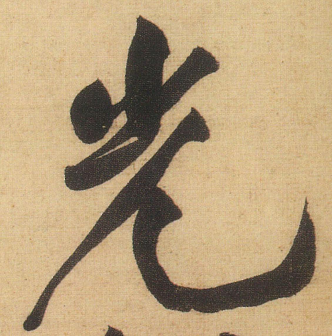 从笔法上看,此卷笔锋多藏少露,其中笔画起笔处,或以藏锋聚点的形式留下形态明显的圆点,如“松”“斗”“椽”等字的竖笔,起笔的圆点都留下了圆转顿笔的动作;或以笔锋切入或逆入之式形成形态各异的方头,如“箕”字的长横、“插”字的提画、“身”字的长撇等。不过其中方笔和圆笔的运用则没有一定规律,而是随手拈来,意趣天成。在行笔时,此卷有意增加了抖动和提按,形成笔画的波折起伏和虚实对比。如“今”字的捺画,在行笔过半时,笔锋稍向上扭转,旋即回调,在舒展的捺画中造出了一个圆滑的波动,使得笔画更为丰富。又如“箕”字的长横,笔锋入纸后马上提笔,写出较细的笔道来,至快收笔时,又增加力度,在一笔之内形成笔画虚实的对比;如“光”字的撇画,下笔由重到轻,再到重,最后提笔收尾,不仅笔画内部跌宕起伏,而且与上部及右下的笔画形成对比,增加了字的丰富性。