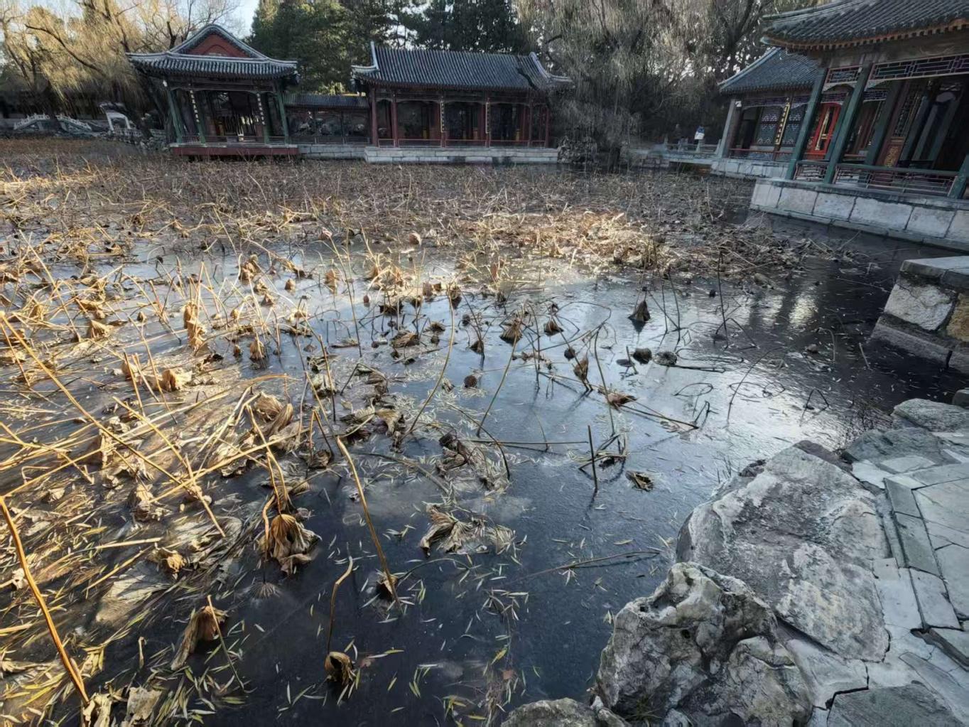 12月7日,初冬的颐和园尽显冬日美景。柔和的光线、静静的佛香阁、柳枝残荷与结成一层薄冰的湖面,构成一幅幅水墨画般的景致。