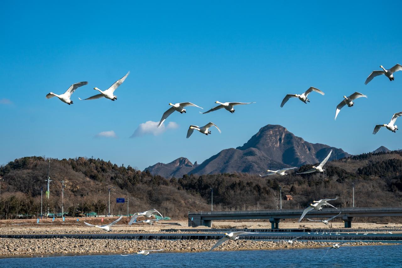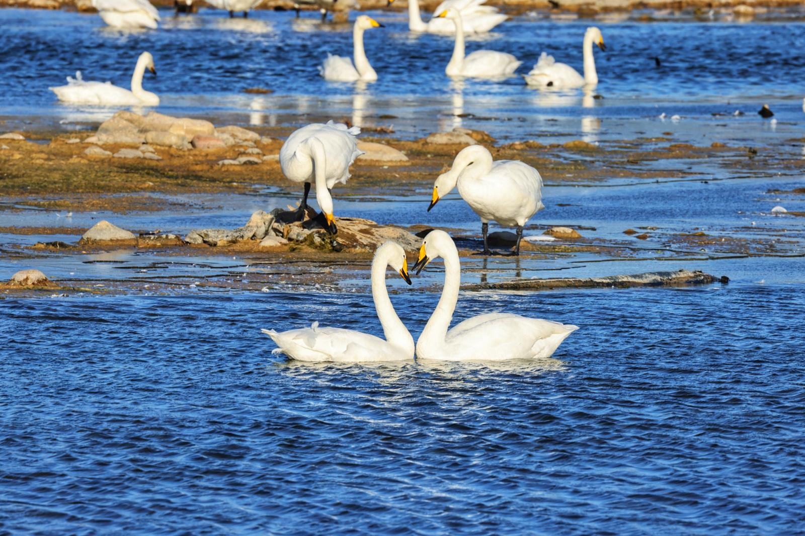 12月7日,80余只来自西伯利亚的大天鹅迁徙至太师屯镇的清水河畔,不仅为当地群众带来了惊喜,更吸引了很多市民驱车前来观赏拍照。冯军山 摄
