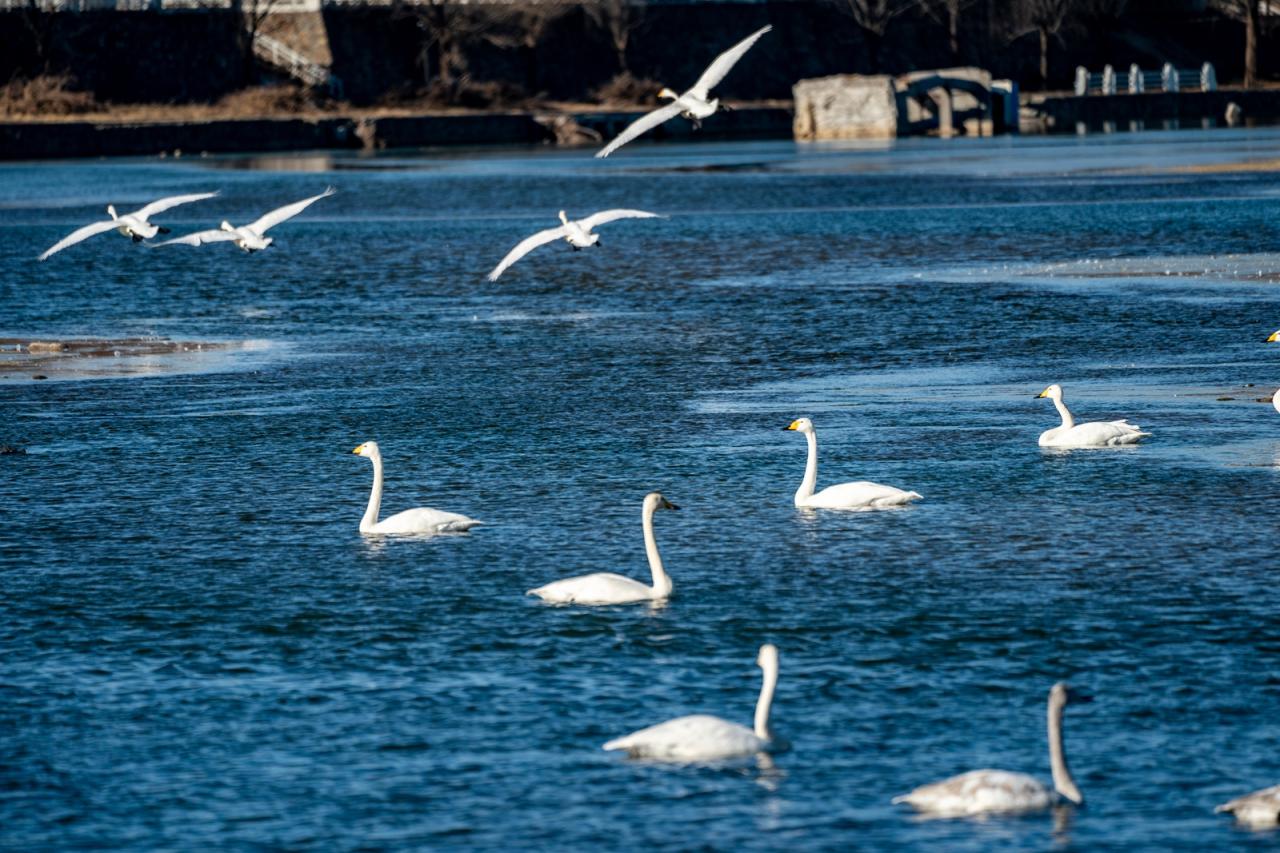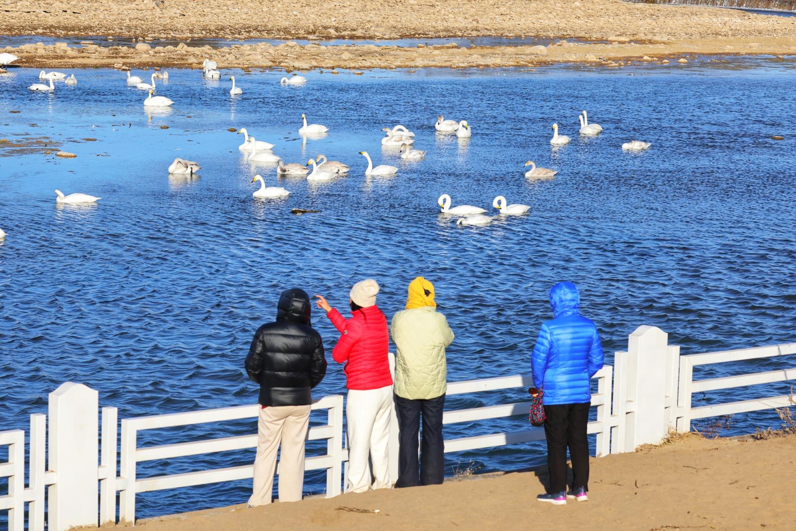 12月7日,80余只来自西伯利亚的大天鹅迁徙至太师屯镇的清水河畔,不仅为当地群众带来了惊喜,更吸引了很多市民驱车前来观赏拍照。李辉 摄