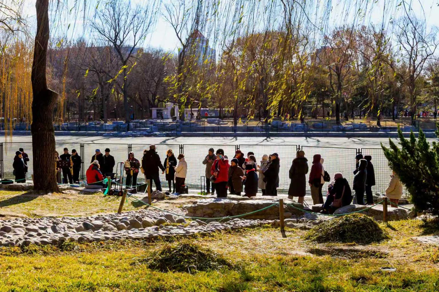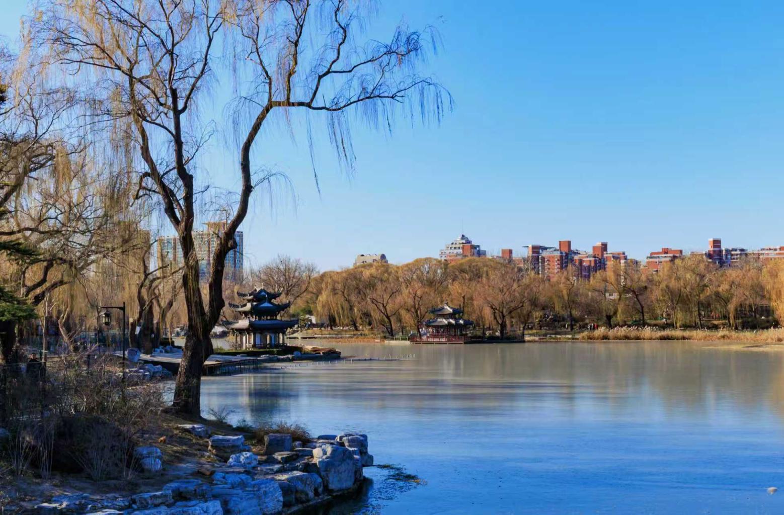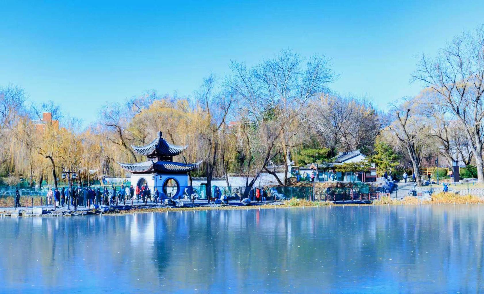 陶然亭公园已显京城冬色,树叶凋尽,湖面冰封如镜。公园却更见动人之景:静中藏生机,寒里聚暖意。人们或跑步锻炼,或载歌载舞,俨然一幅动静相宜、冷暖交融的冬日画卷。张志仁 摄