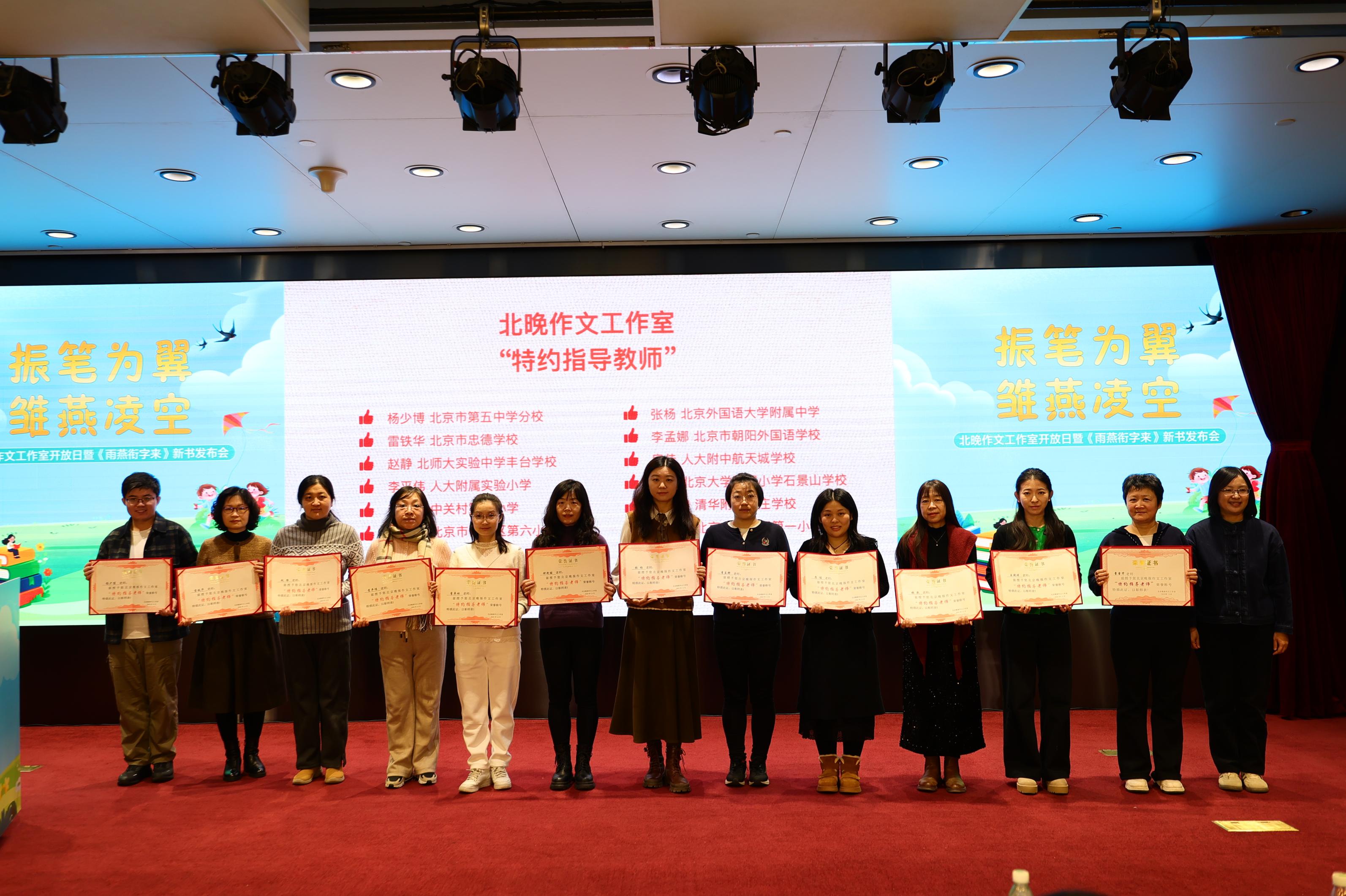《北京晚报》作文版是孩子们成长的乐园,刊登的一篇篇文章背后,离不开学校的大力支持与老师的辛勤指导。因此,在本次发布会上,北晚作文工作室与北京市东城区府学胡同小学、北京市第一七一中学、北京市西城区志成小学、北京师范大学附属实验中学、北京大学附属中学、人大附中航天城学校、密云区第一小学等12所学校,就“北晚作文工作室优质生源校”建设达成合作共识。与此同时,12位悉心指导学生写作投稿、积极组织学生参与工作室活动的教师,也成为北晚作文工作室的特约指导教师。