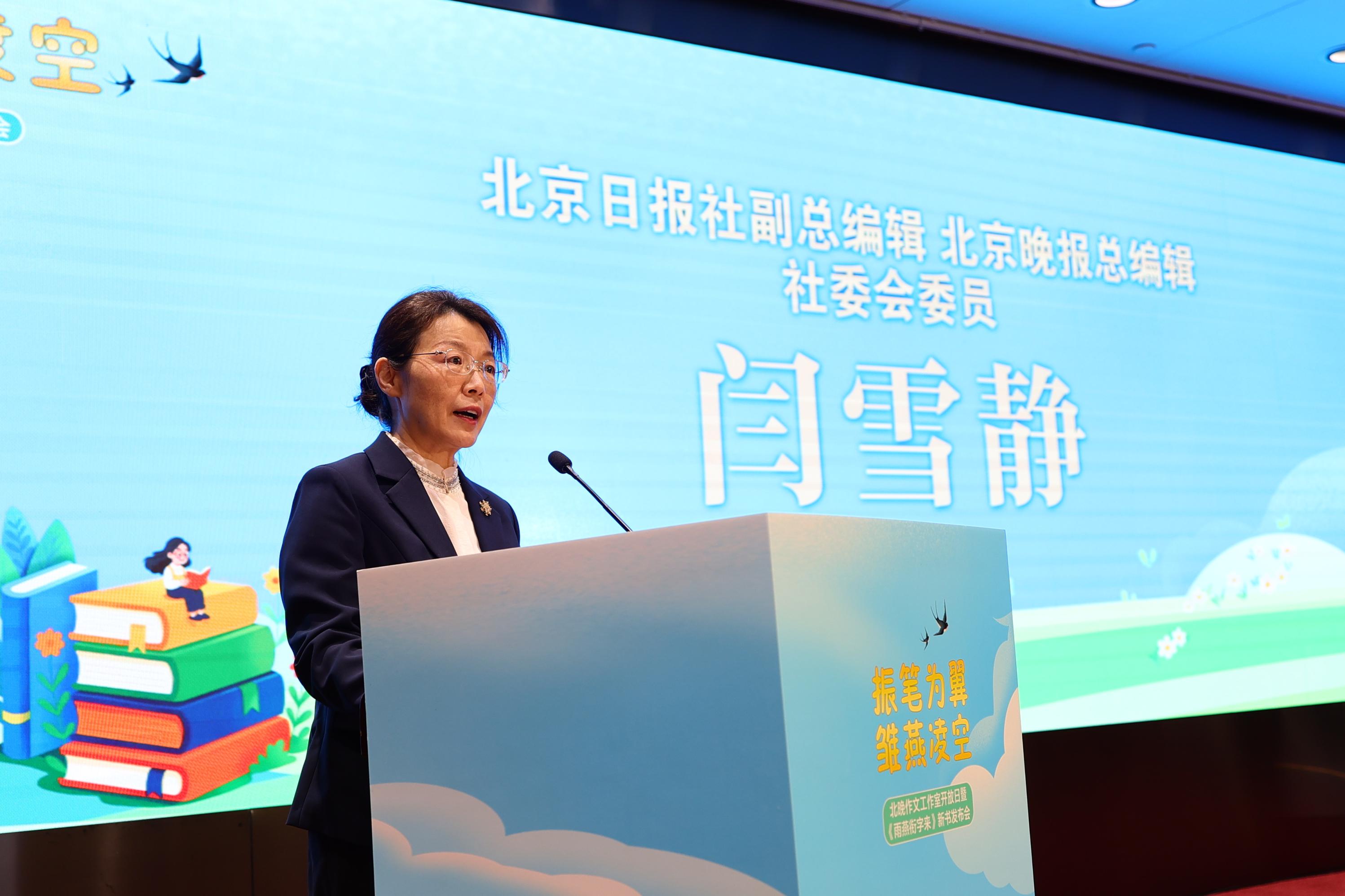 雪景与书香交融,发布会大厅暖意十足。在一片其乐融融的氛围中,北京晚报总编辑闫雪静深情致辞。她说,今天发布的《雨燕衔字来》,是北京青少年精神风貌与人文素养的精彩缩影,既有“真”的深度,又有“新”的尝试,还有“广”的视野。这本书收录的不仅仅是作文,更是一个个成长的足迹,一颗颗纯真的心灵,一个个美好的梦想。