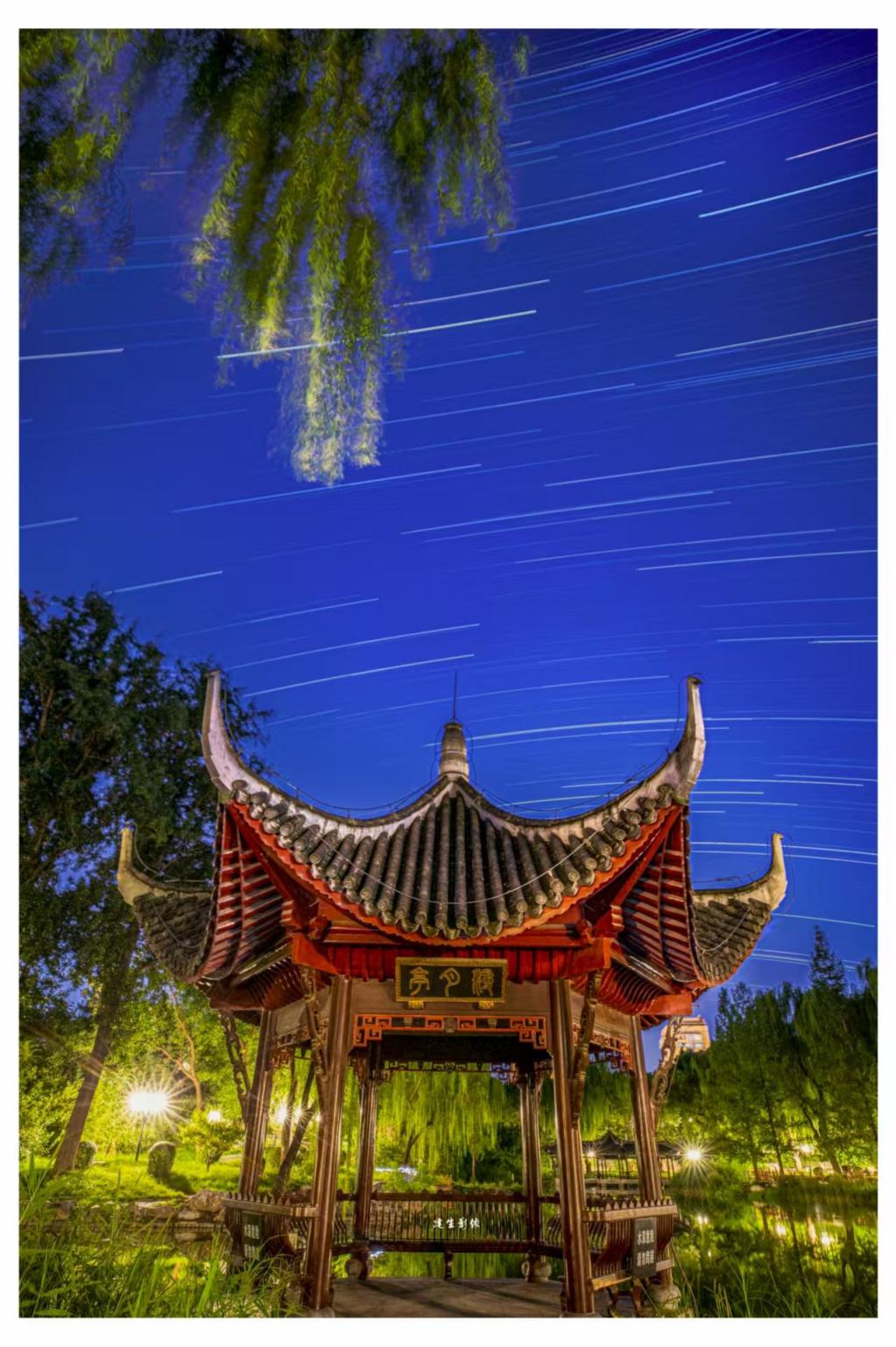 陶然亭公园浸月亭与漫天星轨同框。 温建生 摄