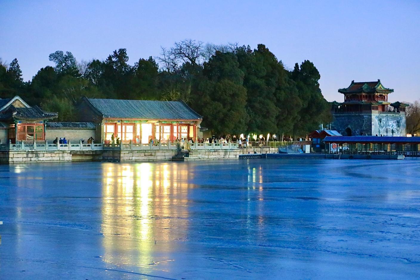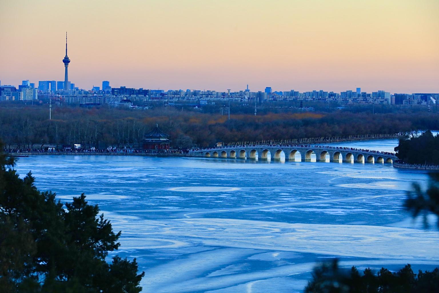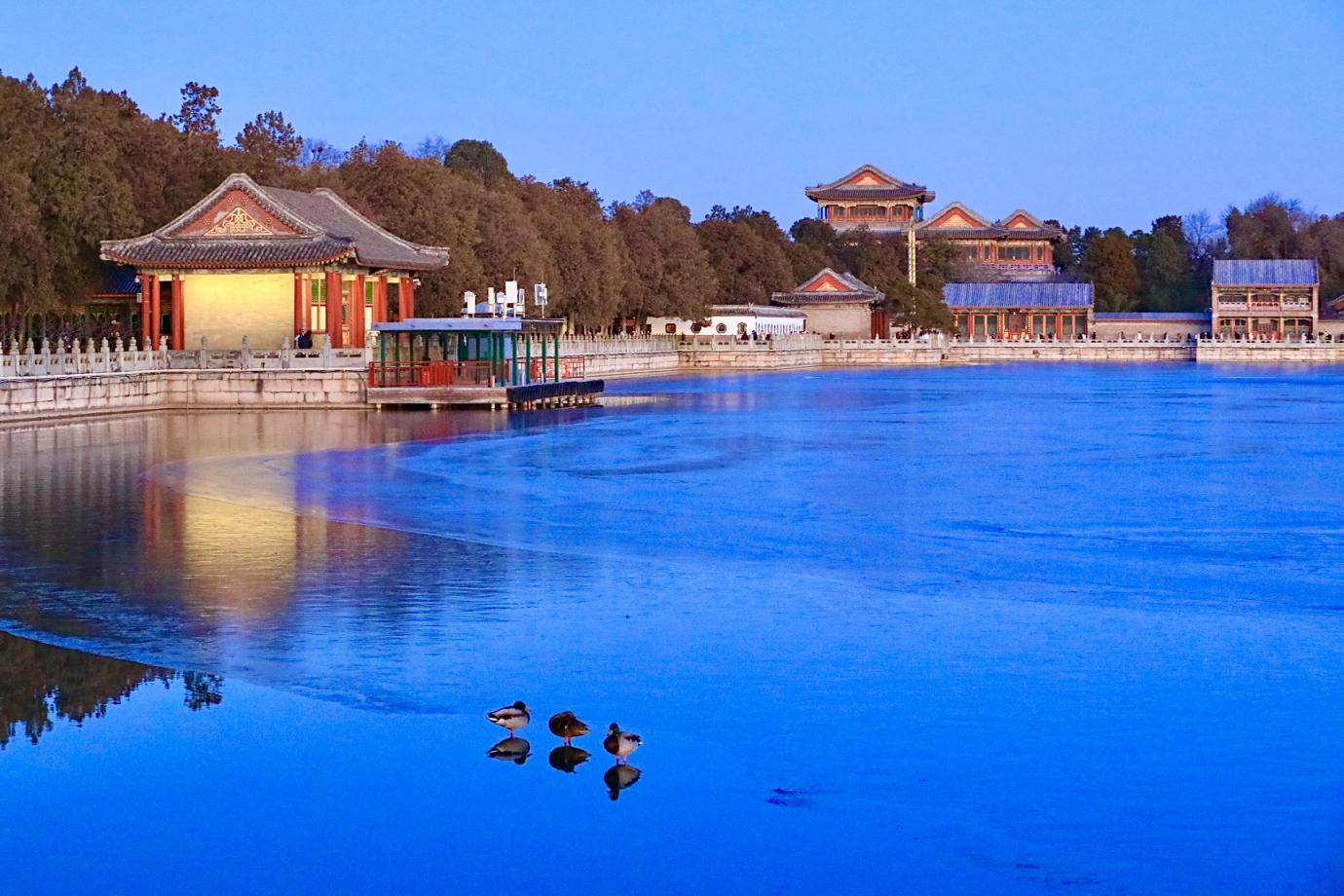 12月23日,暮色四合,颐和园的轮廓在蓝调中渐渐沉静,天光水色在此刻交融,湖面上流淌着最后一缕迷人的色彩。任志祥 摄