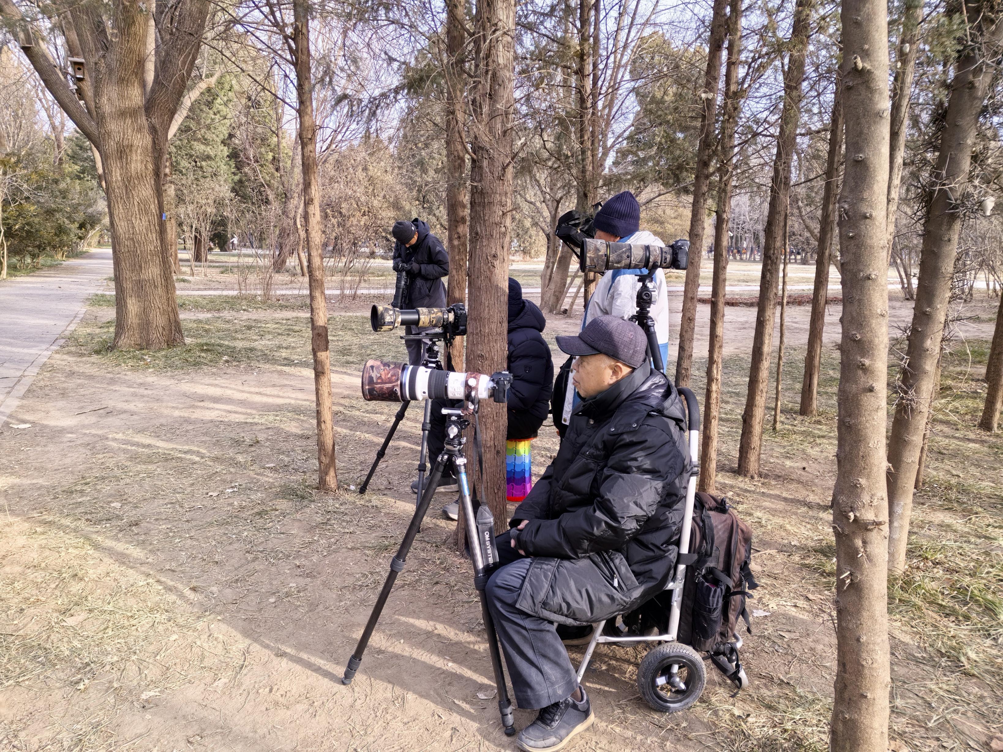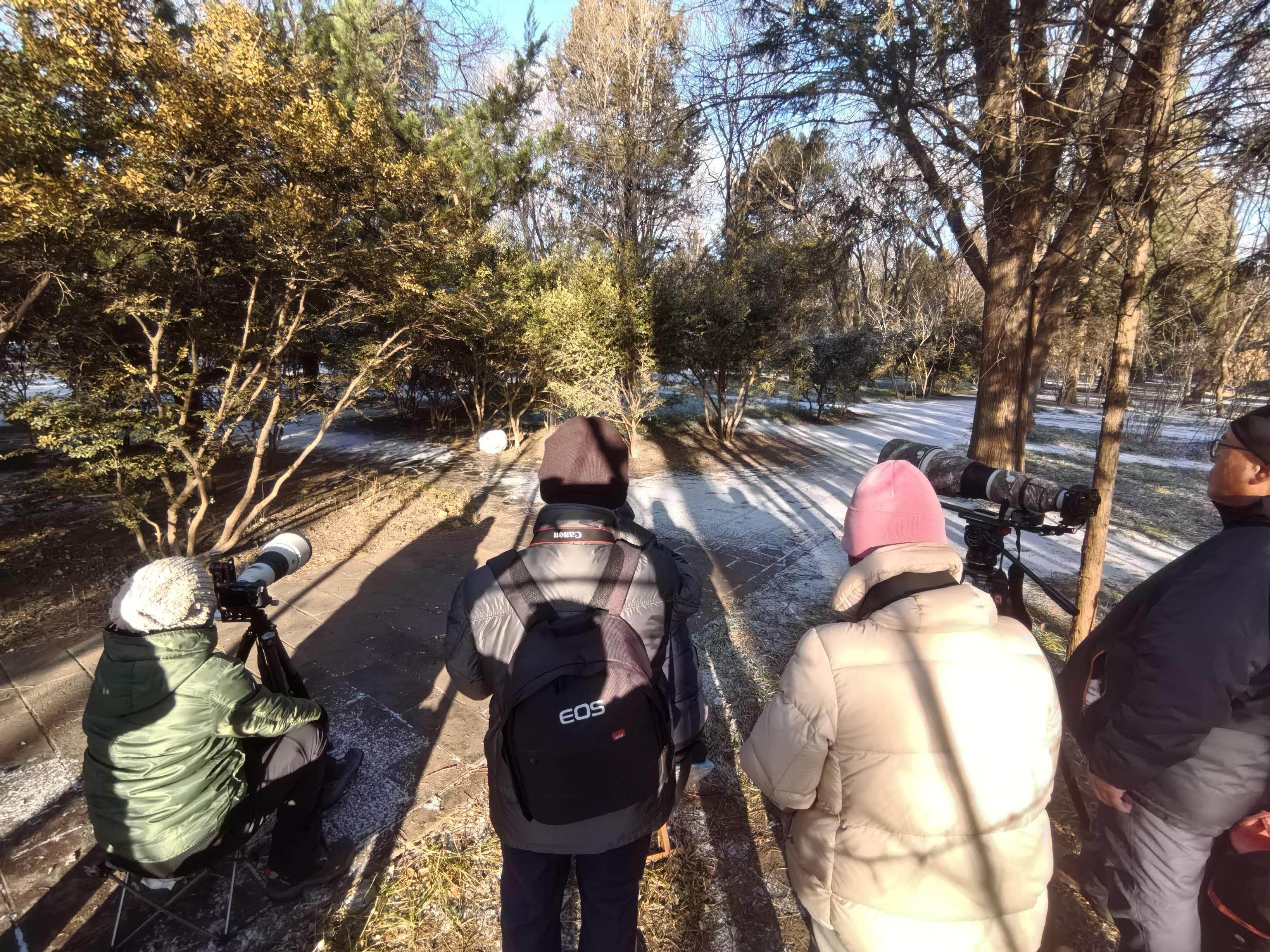 去年11月底12月初,网络上就开始出现欧亚鸲的照片。天坛公园的几处树丛自然是被围得里三层外三层。12月10日,当更多人慕名而来时,它们却突然消失了。很多人逡巡在西北角和科普园之间,却一无所获。在一群“失意者联盟”中,有一位摄友描述了几天前的盛况:“西北角那片十多平方米的空地上,站着二三百号人,我挤都挤不进去。”