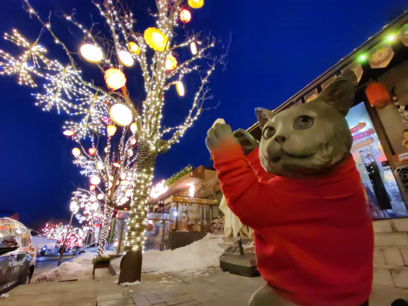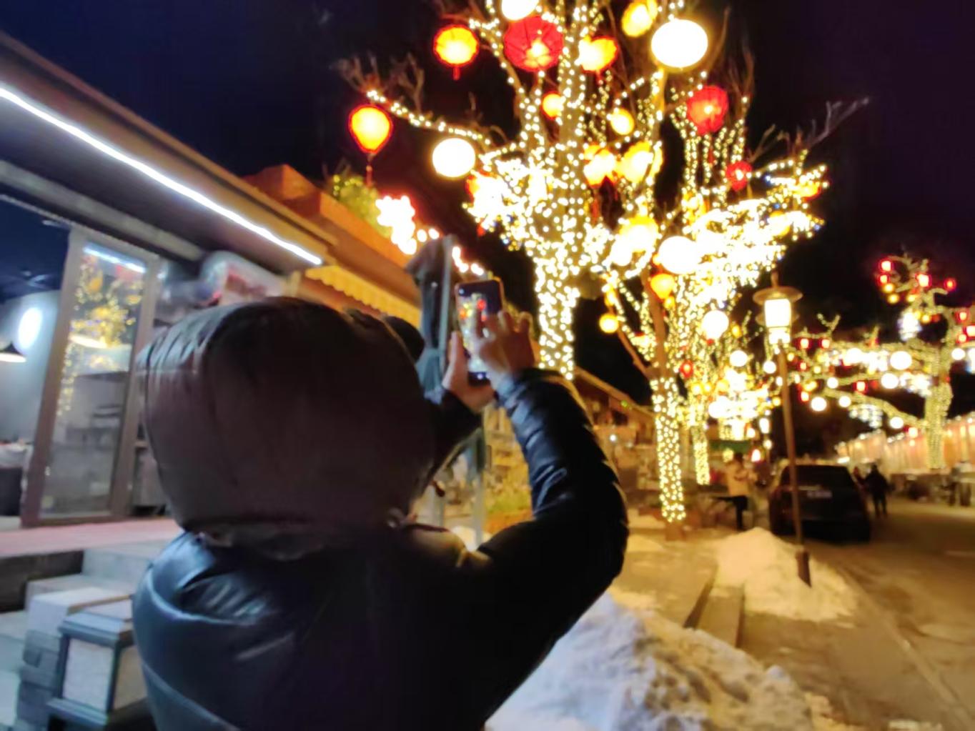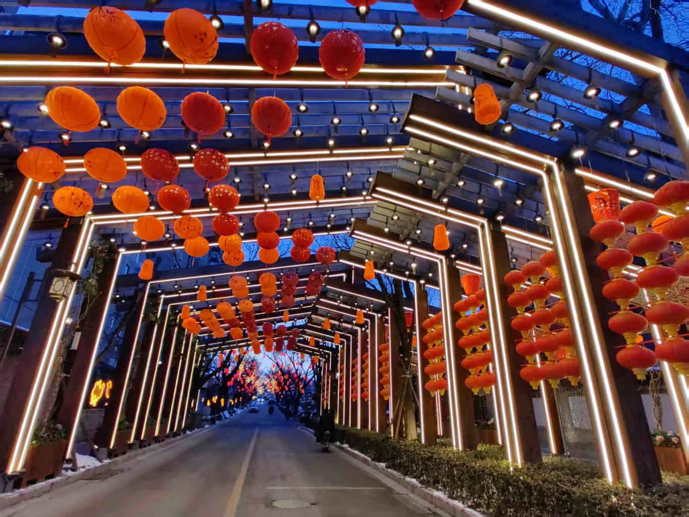 1月19日晚,石景山区模式口古街上挂满了各式各样的小彩灯,营造出浓浓的年味氛围。