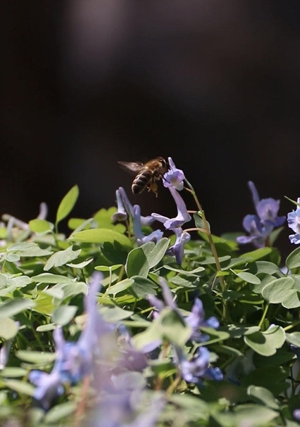 这些早春的昆虫访客,与这片蓝紫色的“花毯”之间,存在着一种温柔的默契:小药八旦子以珍贵的花蜜与花粉,为刚刚苏醒的昆虫提供第一顿早餐;而这些飞翔的使者,则帮助它完成生命的延续。这份在春寒中启动的互助契约,是森林苏醒仪式中安静却关键的一环。