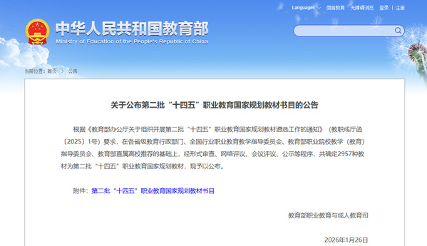 1月26日,教育部职业教育与成人教育司发布《关于公布第二批“十四五”职业教育国家规划教材书目的公告》,4部由山东外事职业大学教师主编的教材成功入选。这一成果既是对学校教师专业能力和教研水平的高度肯定,也为学校“十四五”期间教材建设工作再添新彩。