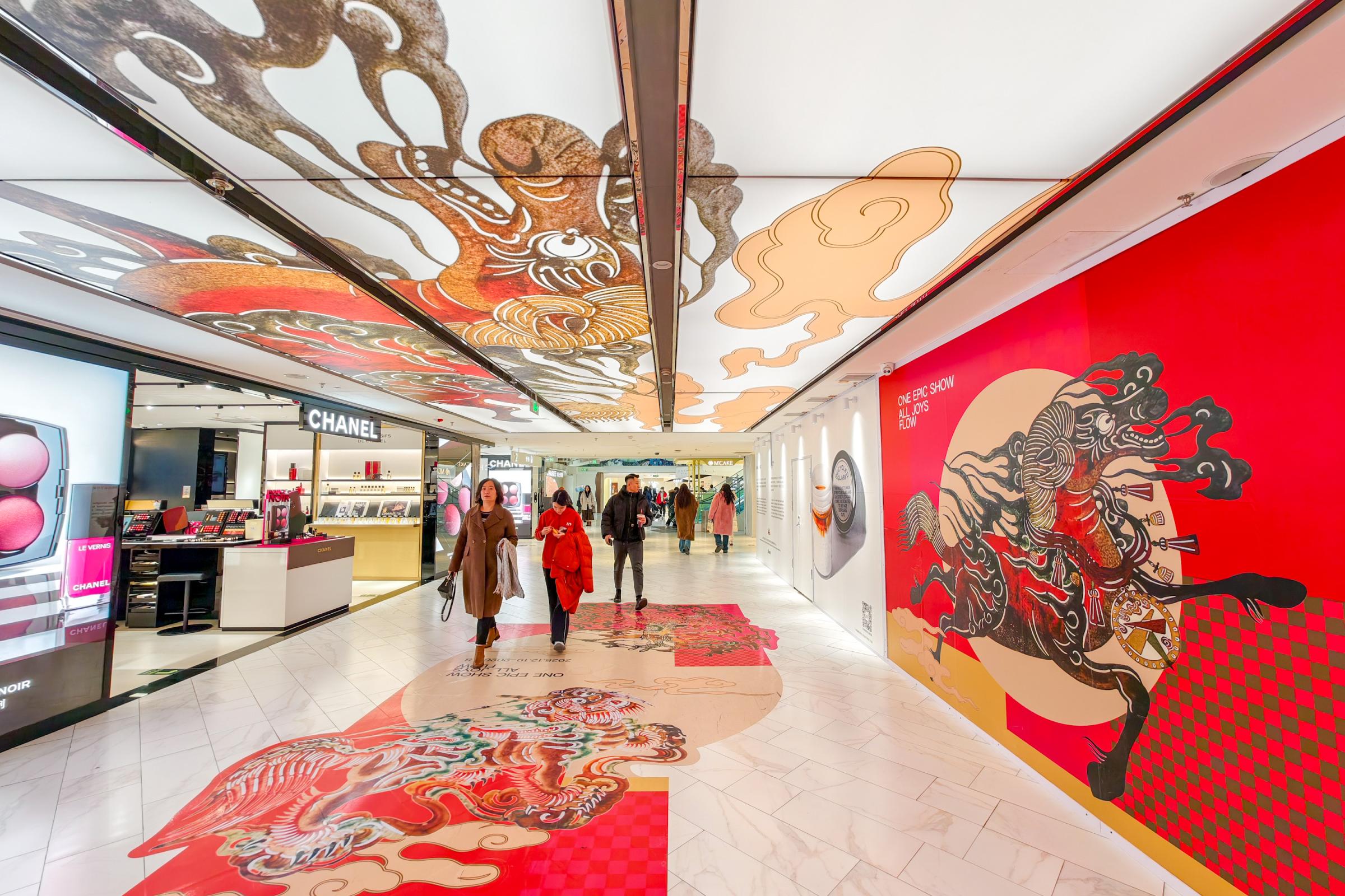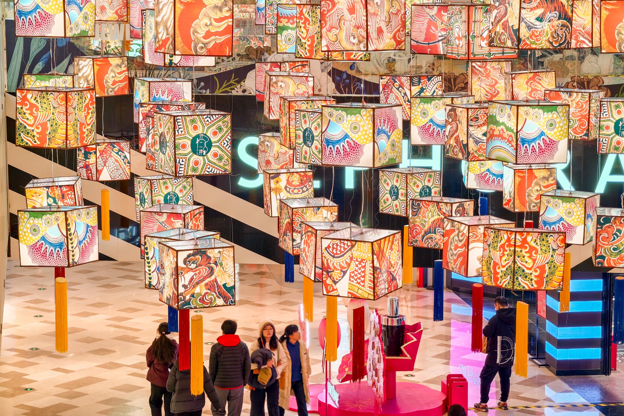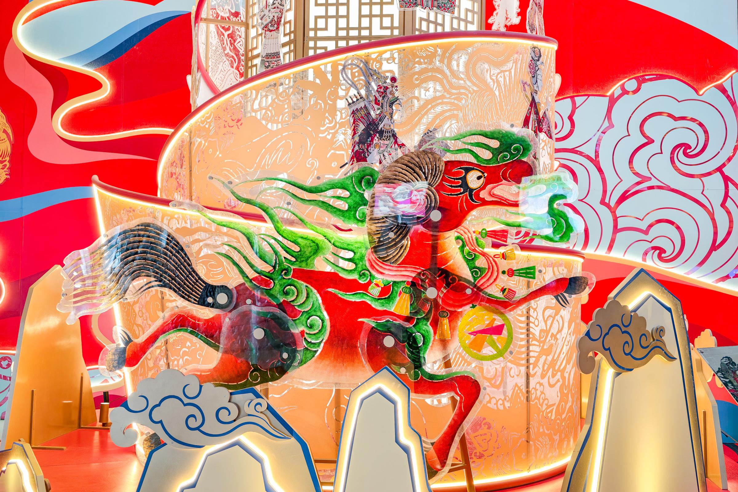 春节将至,北京各大商场换上新春布景,在西单大悦城,融入马元素的非遗皮影造型装饰营造红火热烈氛围,增添节日喜气。