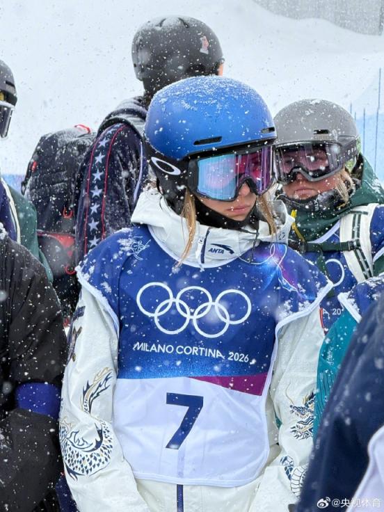 她的新战袍成为焦点——龙纹与青花瓷元素结合,中国风拉满,在冰雪之间格外瞩目。