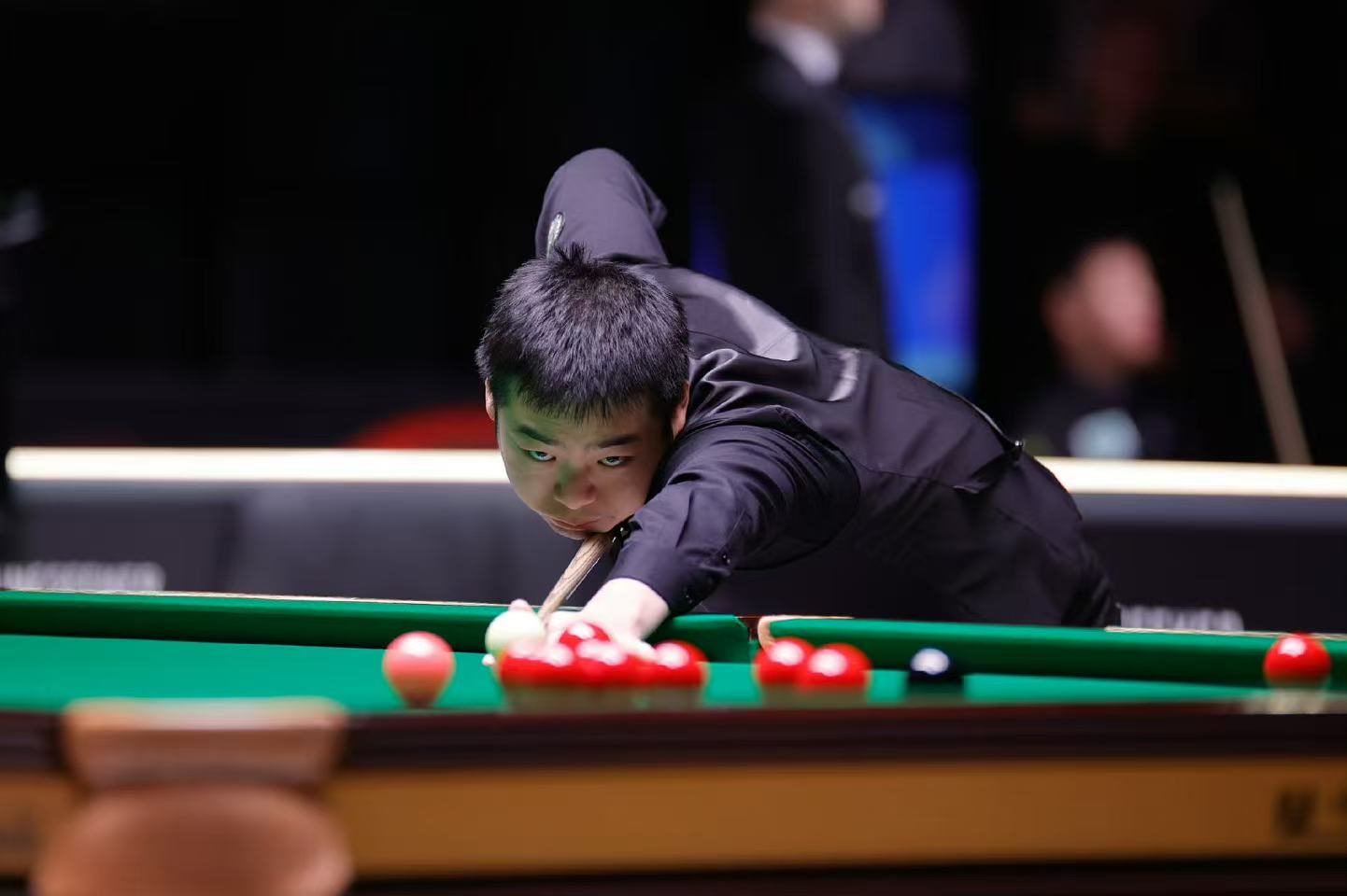 当日赛事中,庞俊旭对阵墨菲的较量最为精彩。比赛一开场,庞俊旭便上演极限逆转,在0比58落后的不利局面下,登台后单杆轰出73分先拔头筹,极大打击了墨菲的士气。在以总比分2比1取得领先之后,庞俊旭手感持续火热,先后打出单杆134分、130分的破百高分,一举锁定赛点,随后顺利兑现赛点,以5比1的强势姿态淘汰墨菲。