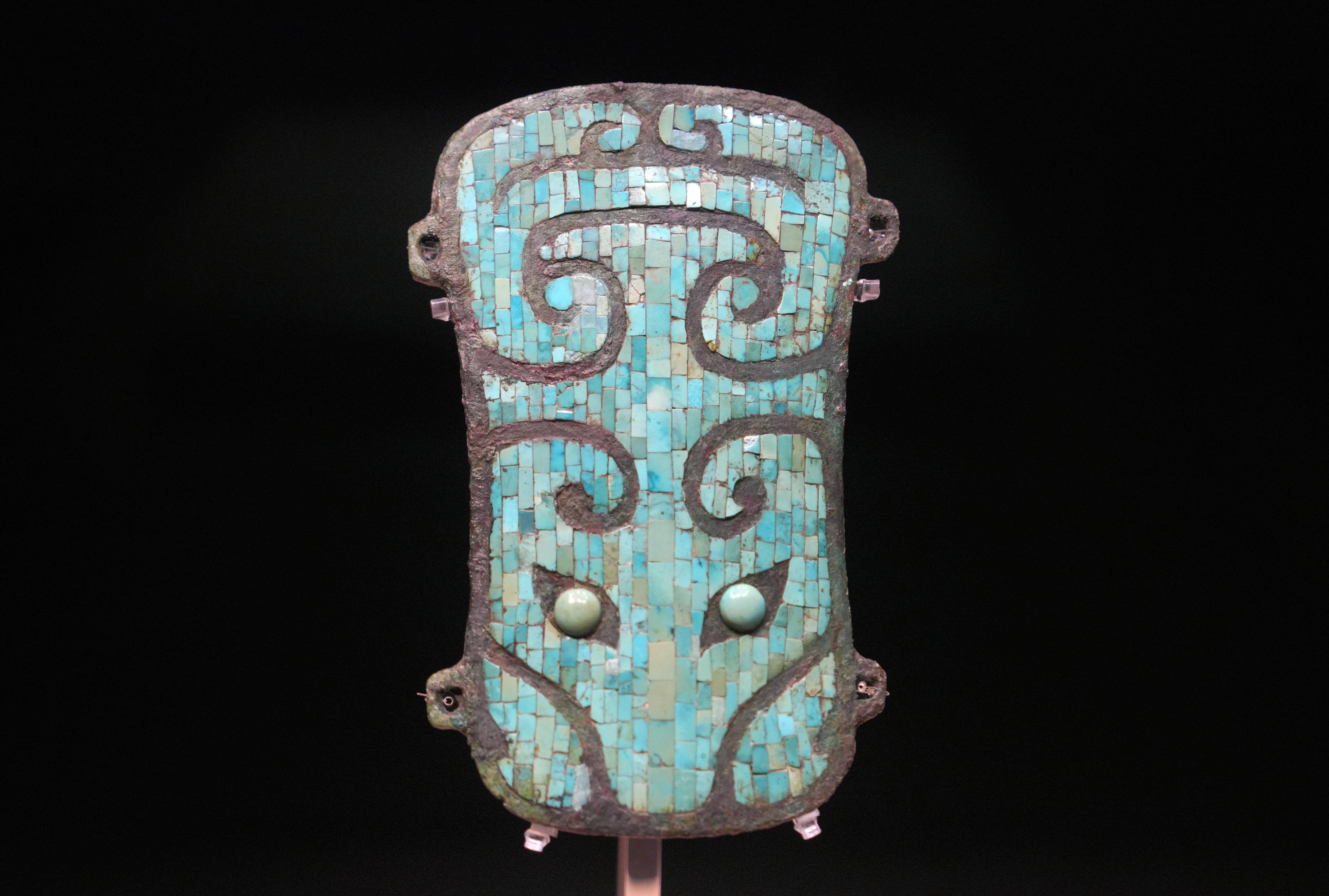 嵌绿松石兽面纹铜牌饰(二里头文化)。