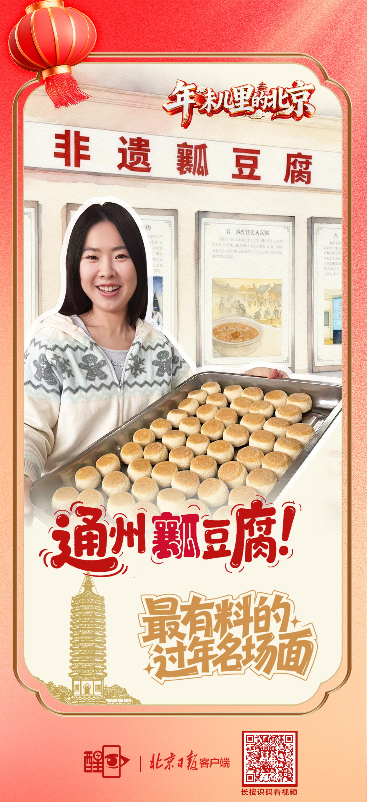 循着年味儿继续探访,这次我们抵达了通州。在非遗传承人孙振洪的引领下,一窥“瓤豆腐”技艺的精妙。记者挽起袖口,亲手体验了这道经典菜肴从挖瓤、填馅到煎制的全程。一块看似朴素的豆腐,在指尖与油火的微妙配合间,被赋予了丰腴饱满的灵魂。