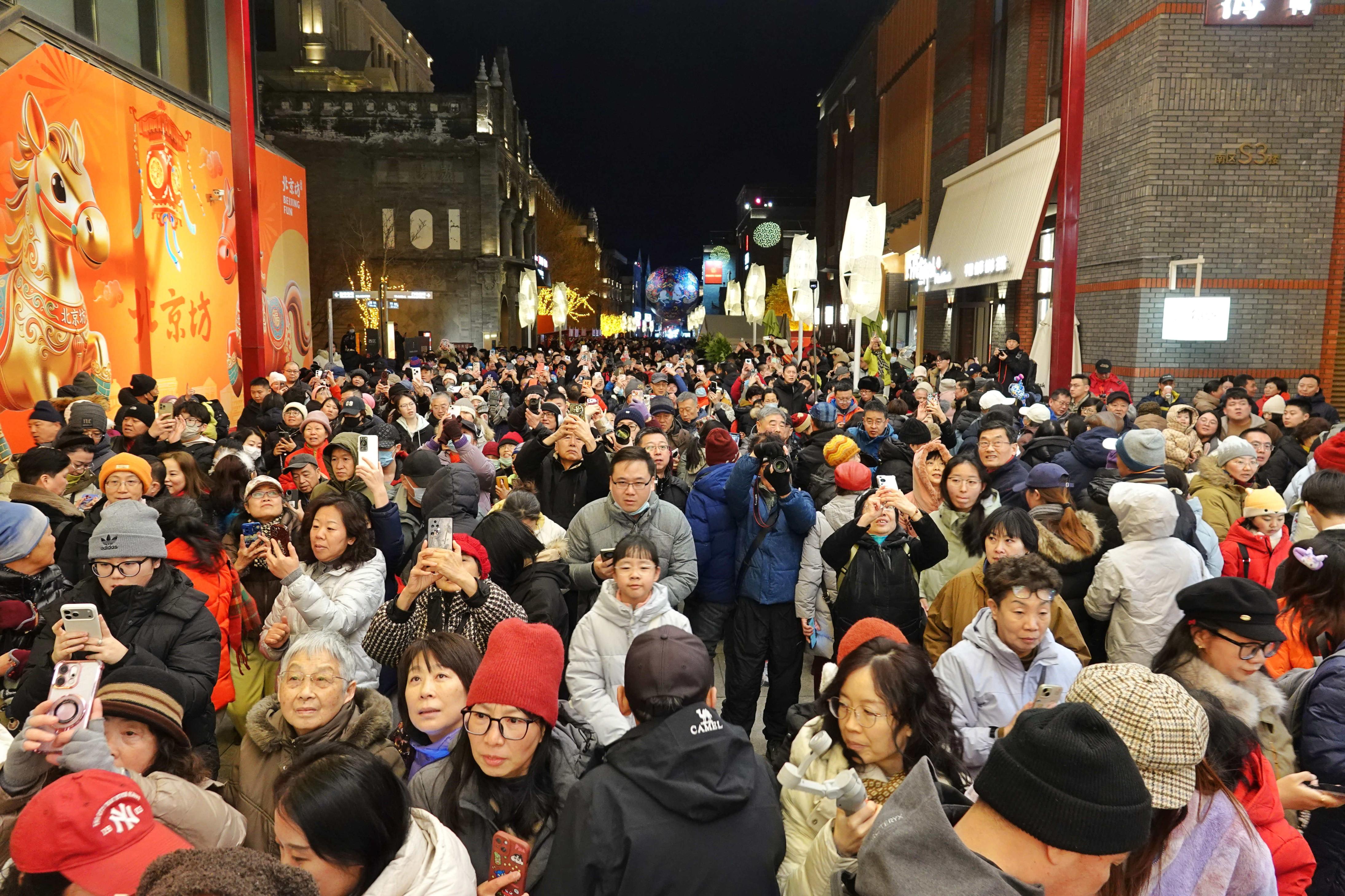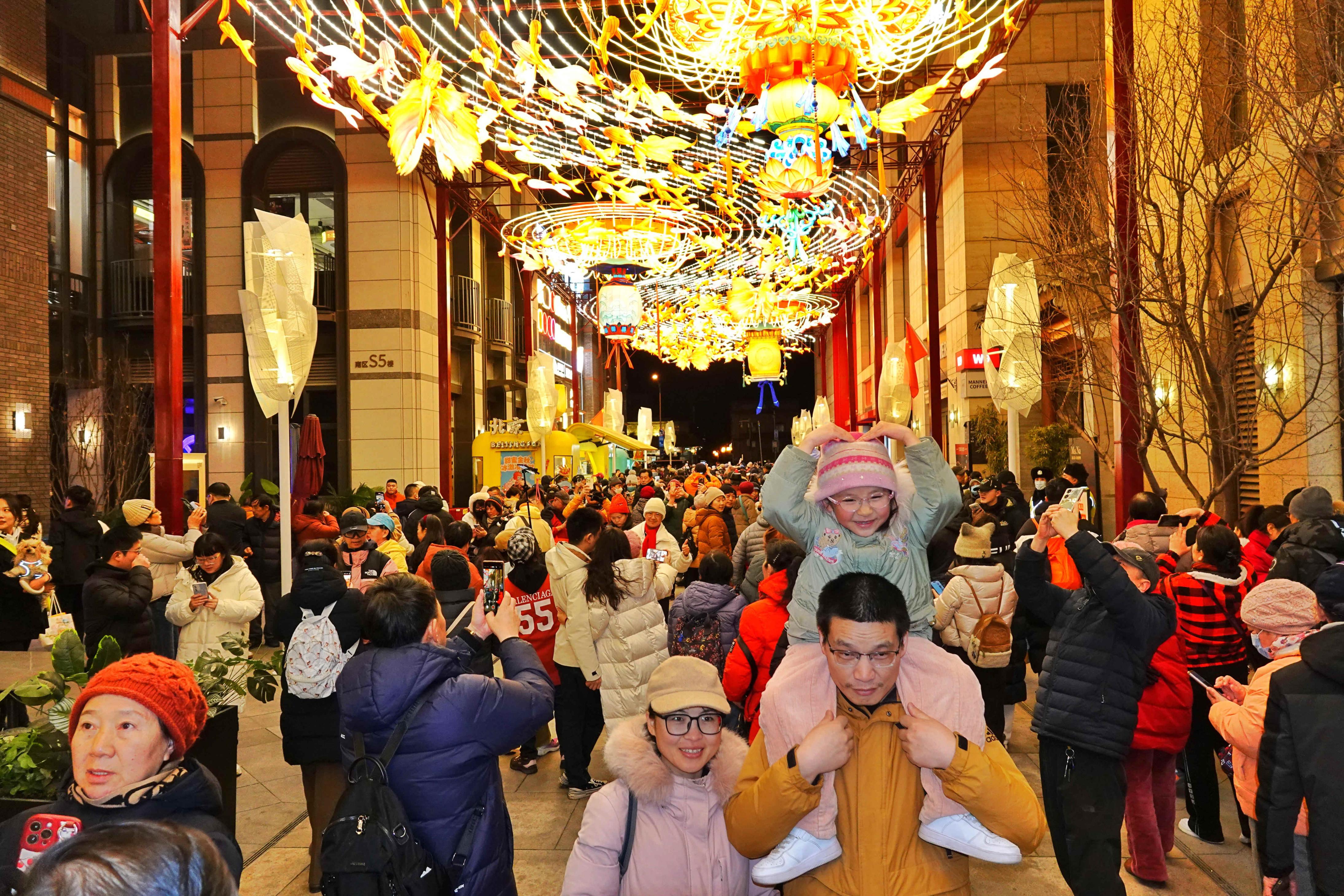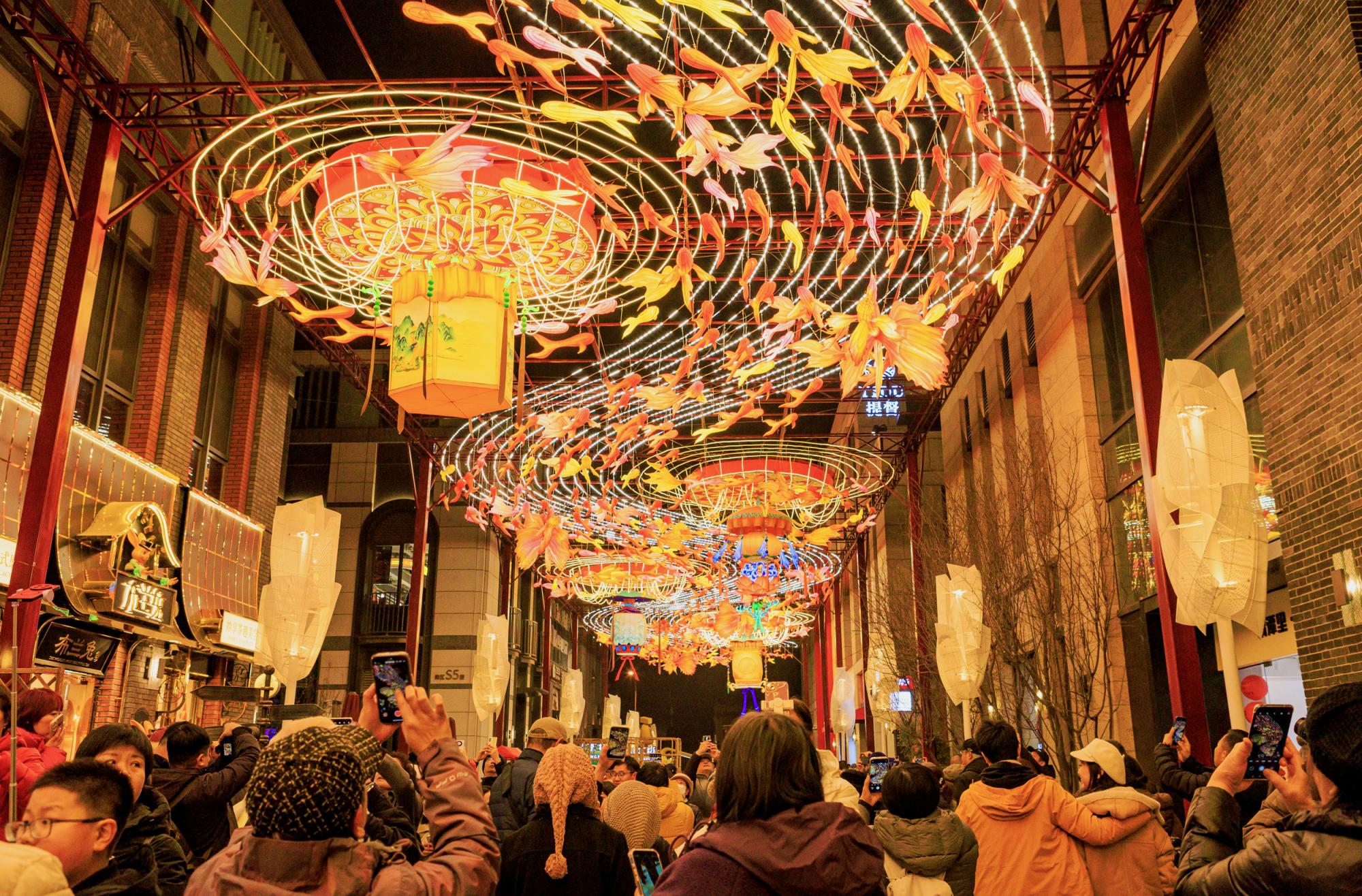 北京坊一如往年,用科技把光变成画笔,将京味十足的胡同装扮得流光溢彩。温建生 摄